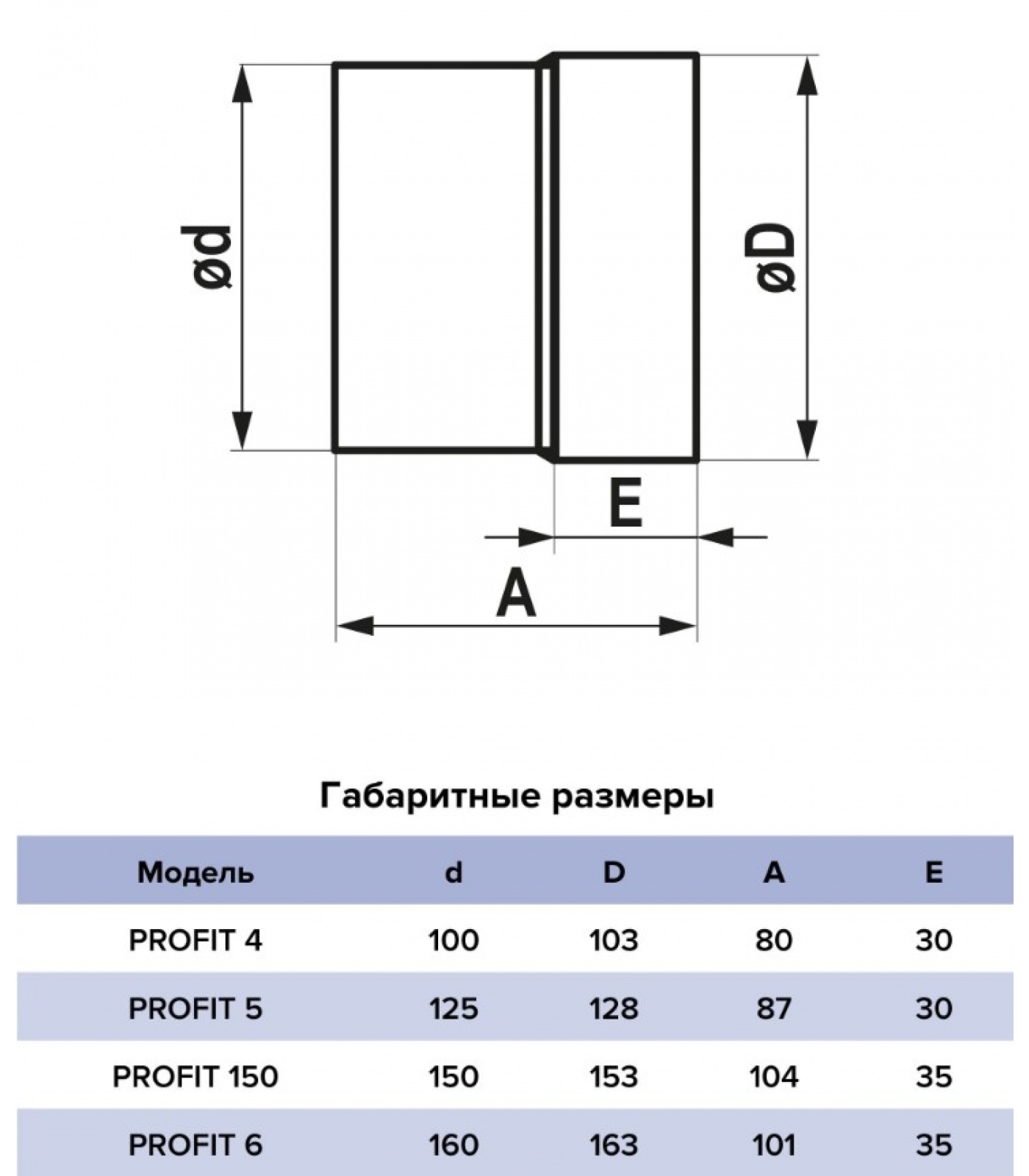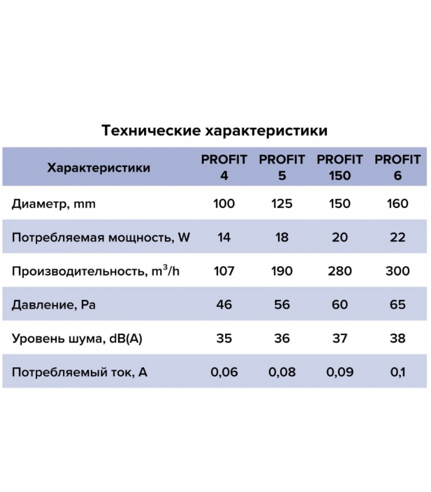 В ассортименте серии PROFIT представлены вентиляторы четырех актуальных типоразмеров: 100, 125, 150 и 160 мм.