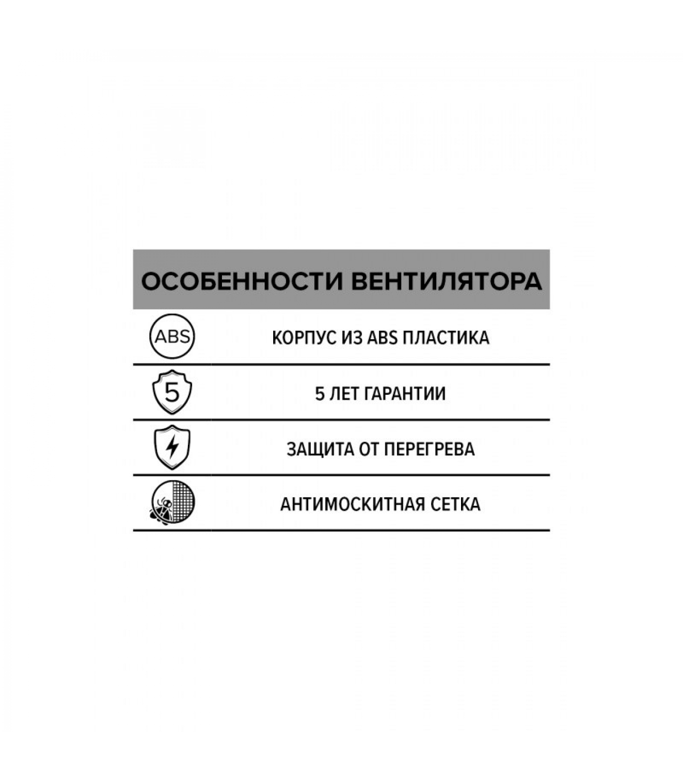 Вентилятор ERA 6S применяется для постоянной и периодической вентиляции санузлов, ванных комнат, кухонь и других бытовых помещений. Вентилятор отвечает самым строгим стандартам качества и безопасности. Двигатель на подшипниках скольжения гарантирует вытяжку влажного и загрязненного воздуха. А защита от перегрева автоматически выключит вентилятор при температуре двигателя +115°С - +125°С. Дополнительно оснащен антимоскитной сеткой из стекловолокна для защиты от проникновения насекомых и мелкого мусора из шахты. Корпус и крыльчатка выполнены из высококачественного и прочного ABS-пластика, который не подвержен старению и надежно прослужит весь срок использования. Монтаж осуществляется с помощью саморезов, которые входят в комплект. Благодаря классическому дизайну вентилятор идеально дополнит любой интерьер.