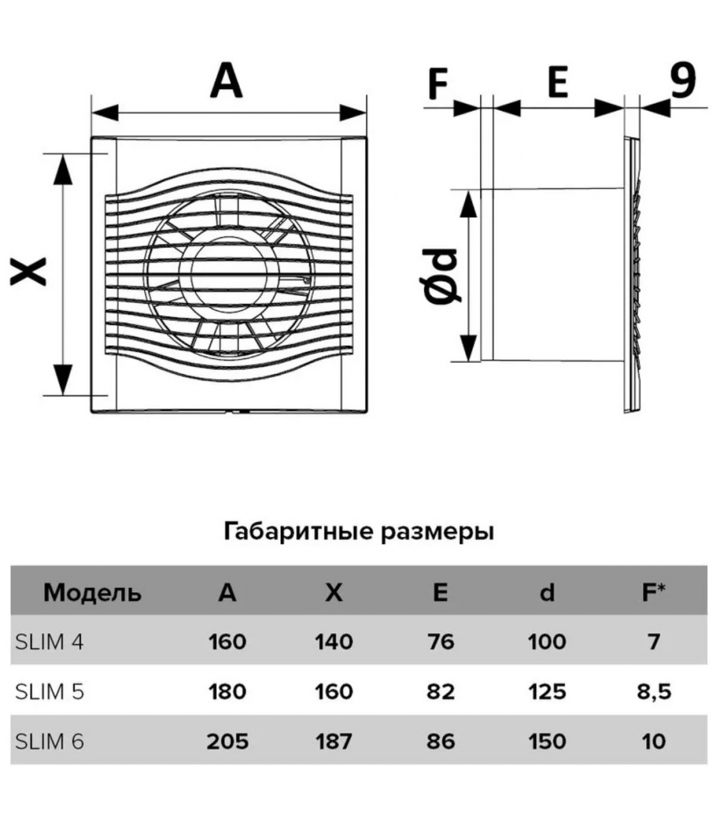 Вентилятор Ø150мм Diciti Slim 205х205мм, обратный клапан, выключатель, белый