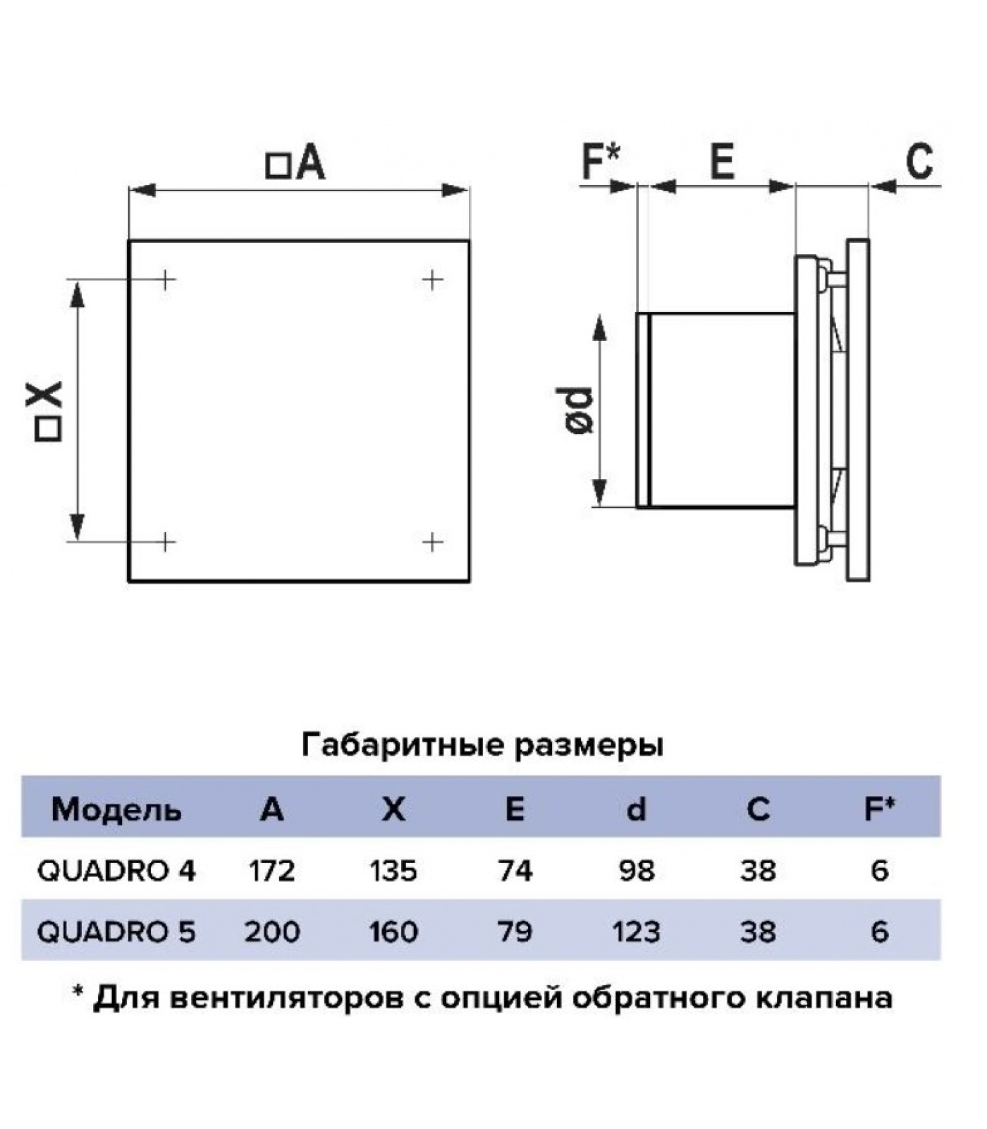 Вентилятор накладной QUADRO D125 обратный клапан ERA