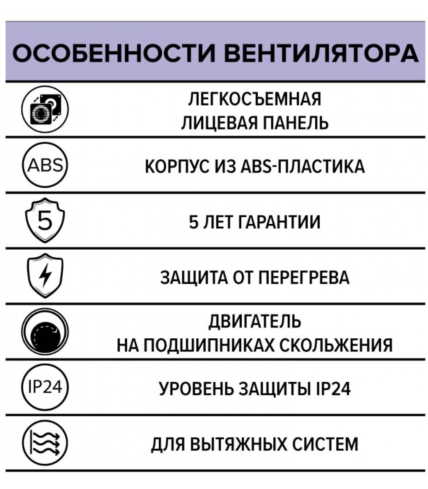 Стандартный для бытовых вентиляторов уровень пылевлагозащиты — IP24.