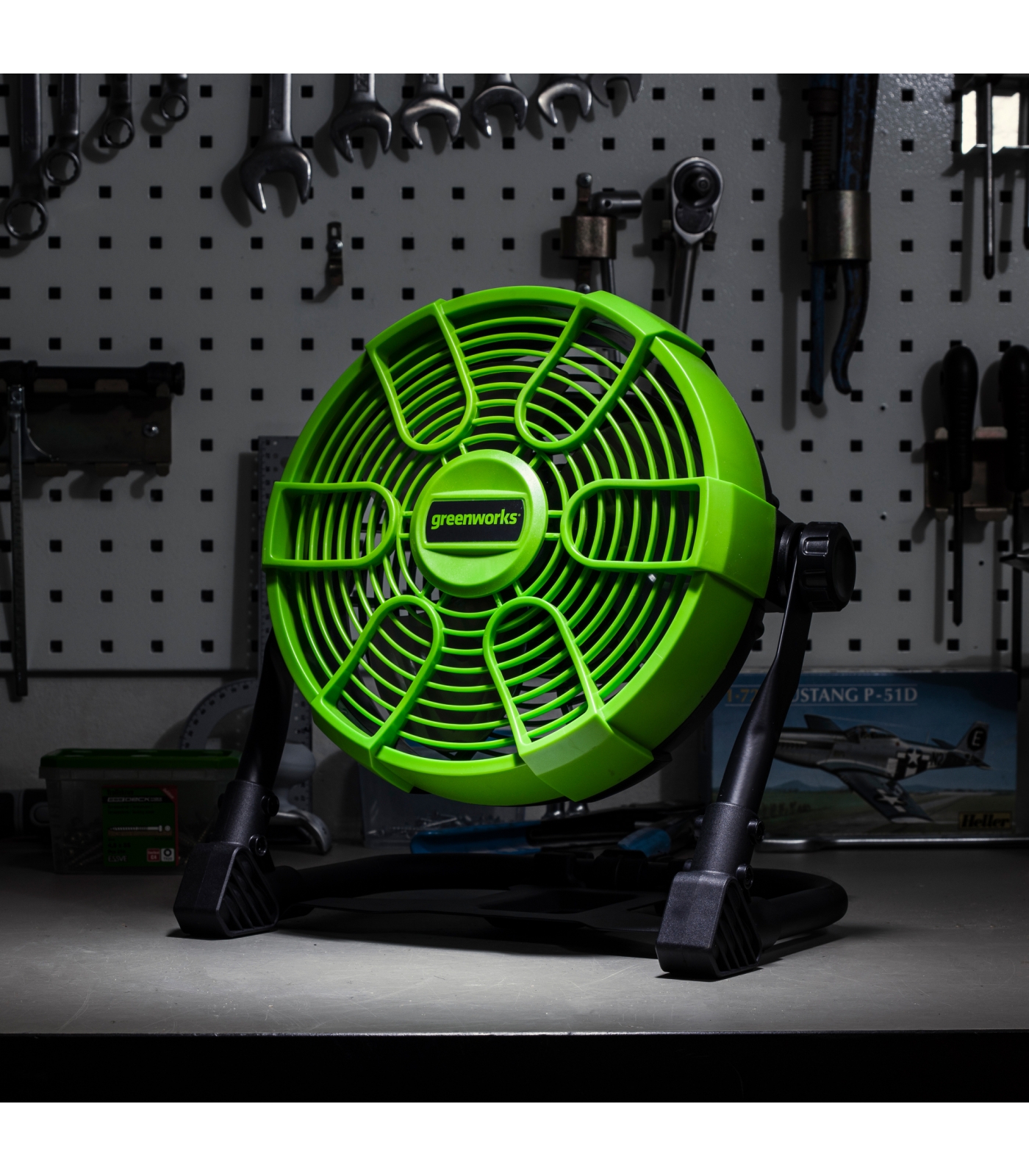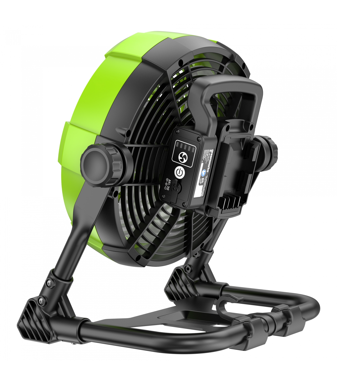 Компактный вентилятор Greenworks G24FAN с гибридным питанием - работает от всех аккумуляторных батарей POWERALL 24V и от сети 220V.