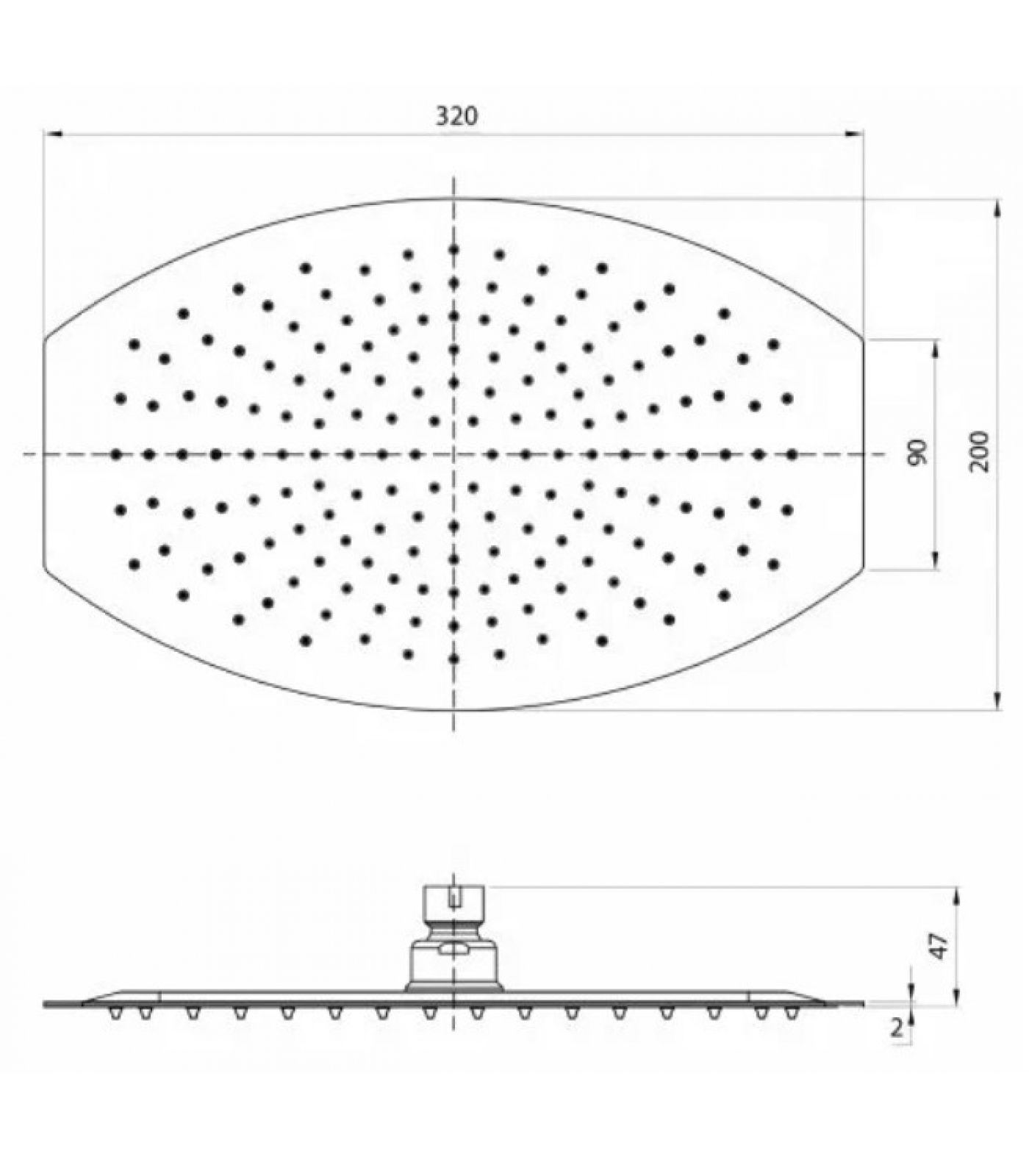 Верхний душ LM9485S имеет один режим работы и размеры 320 х 200 мм.