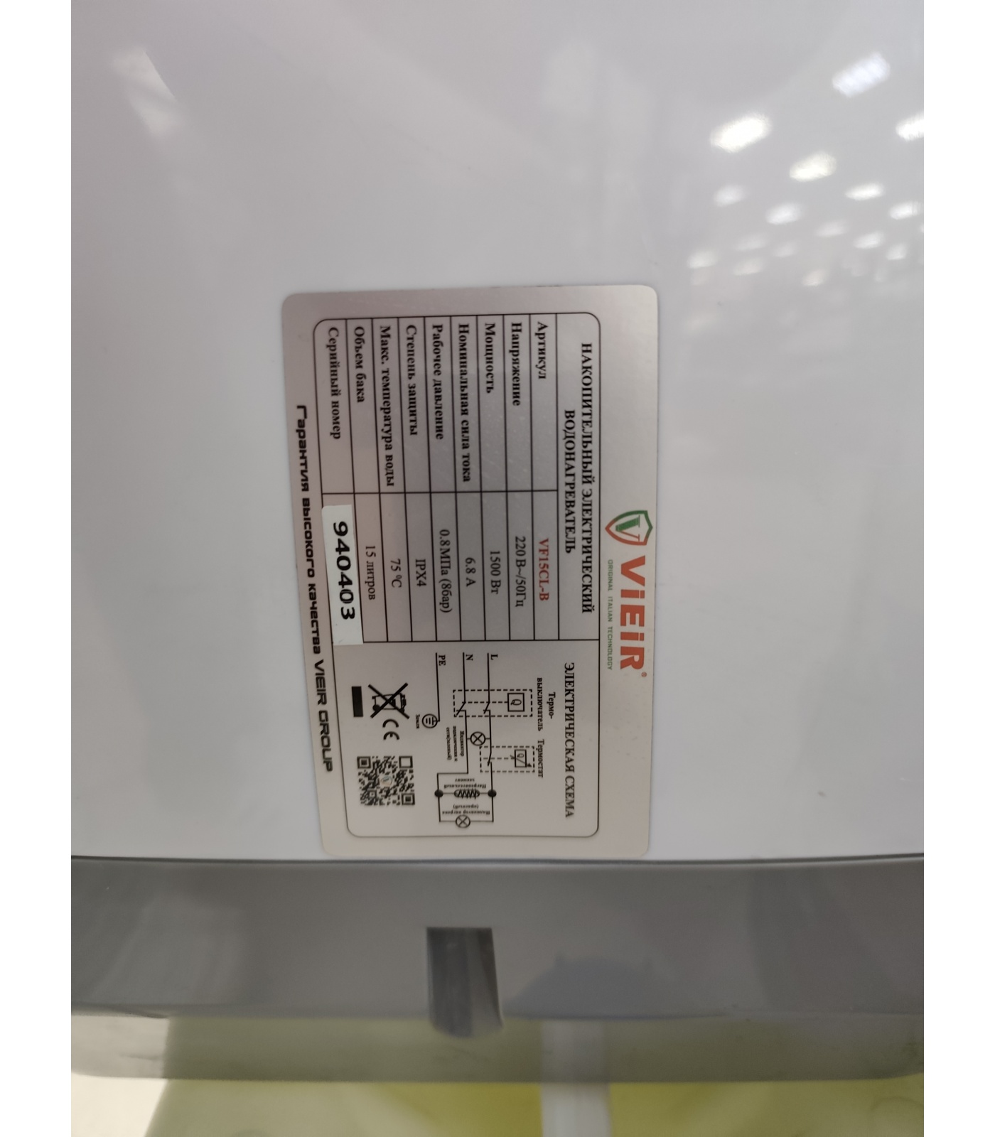 Водонагреватель 15л Vieir VF15CL-B, нижнее подключение, Уценка