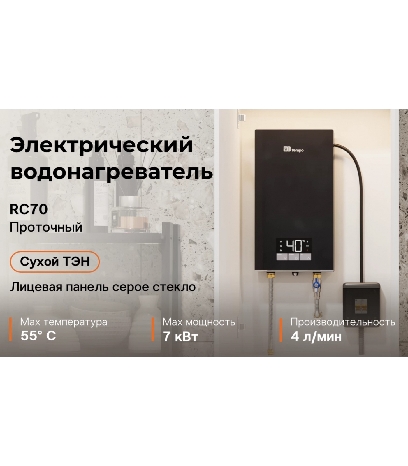 Водонагреватель RC70 проточный электрический, темно серое стекло, E8 Tempo