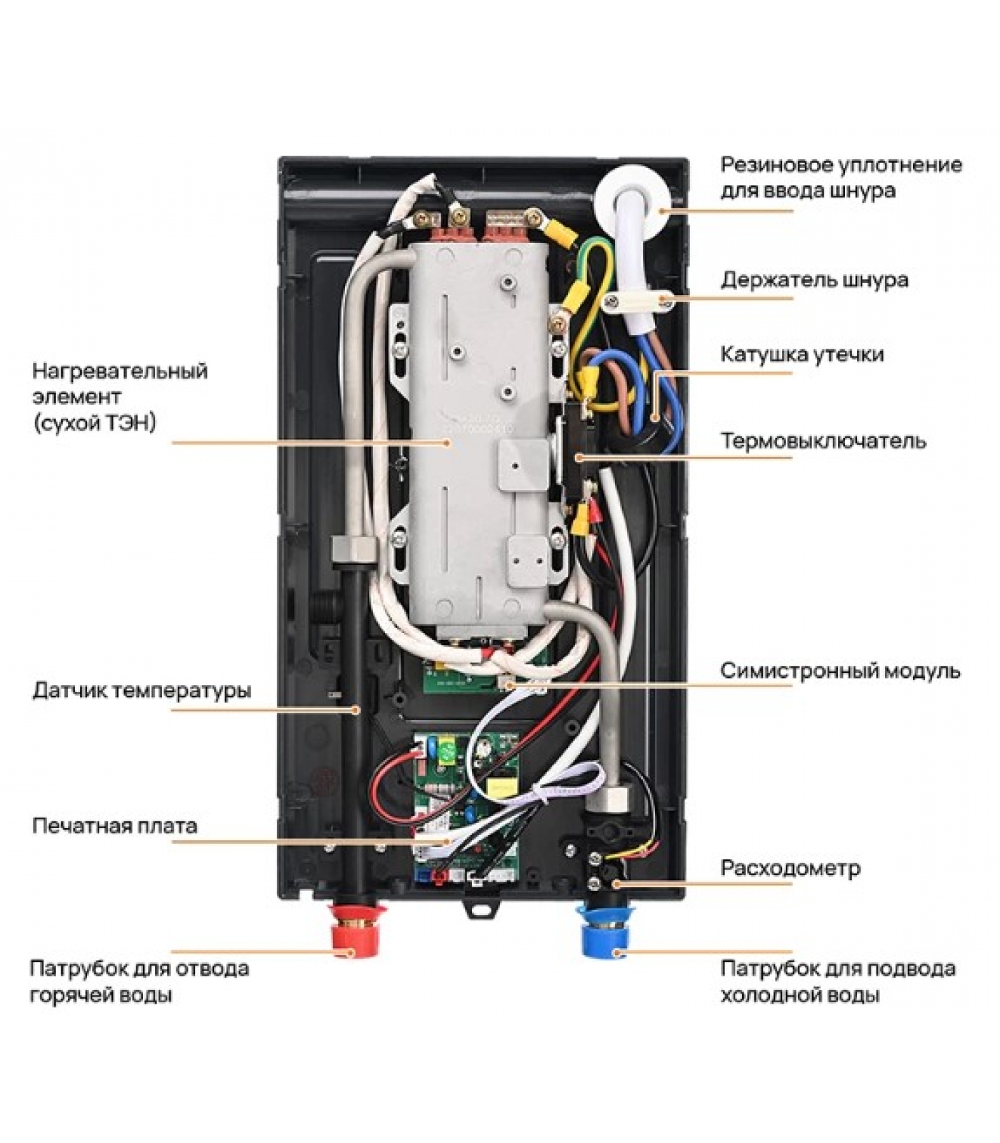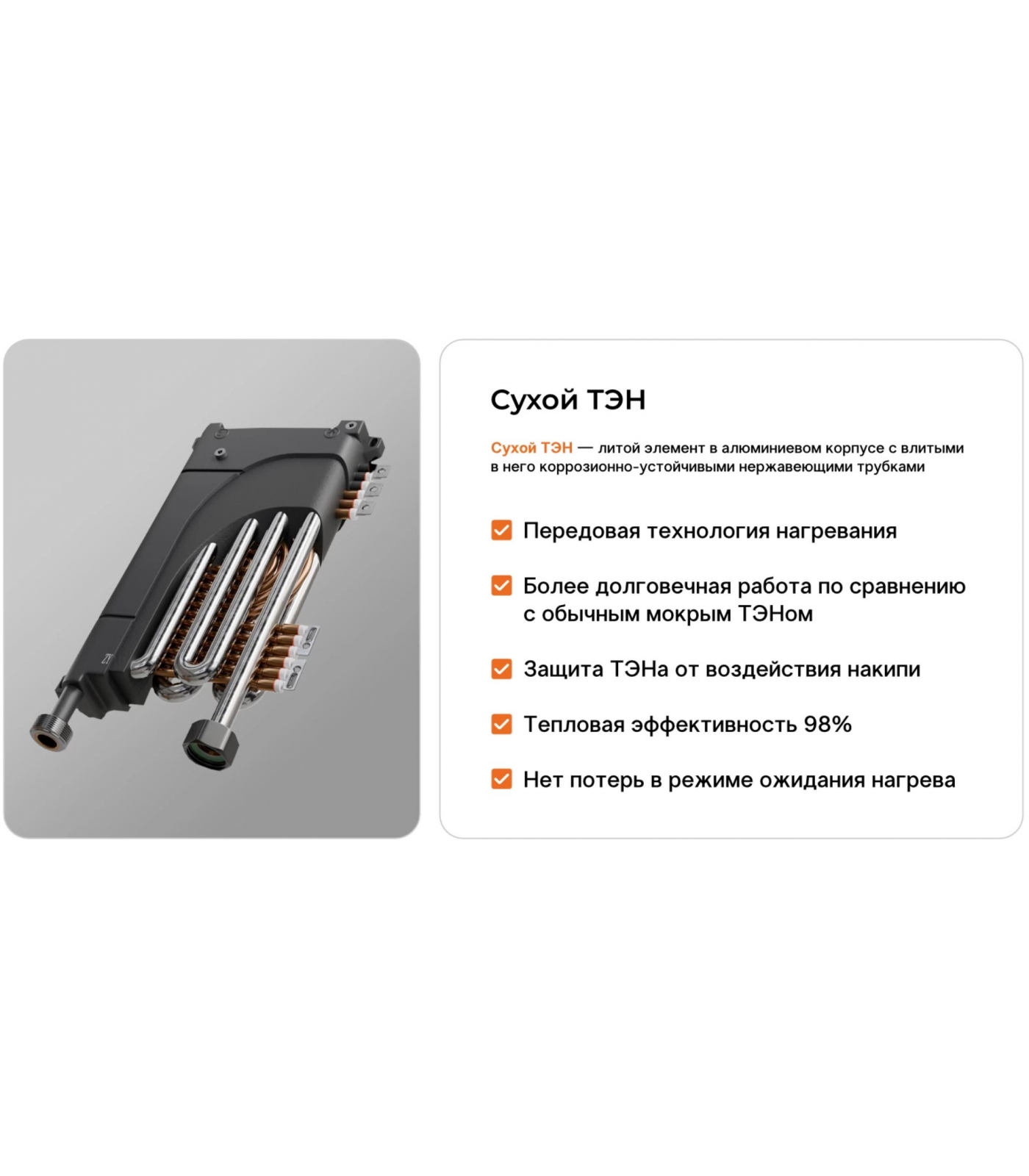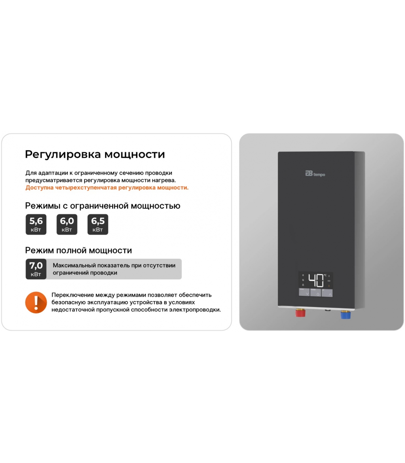 Прибор обеспечивает мгновенную подачу горячей воды. Без предварительного нагрева, без потерь на нагрев в режиме ожидания, энергосбережение.