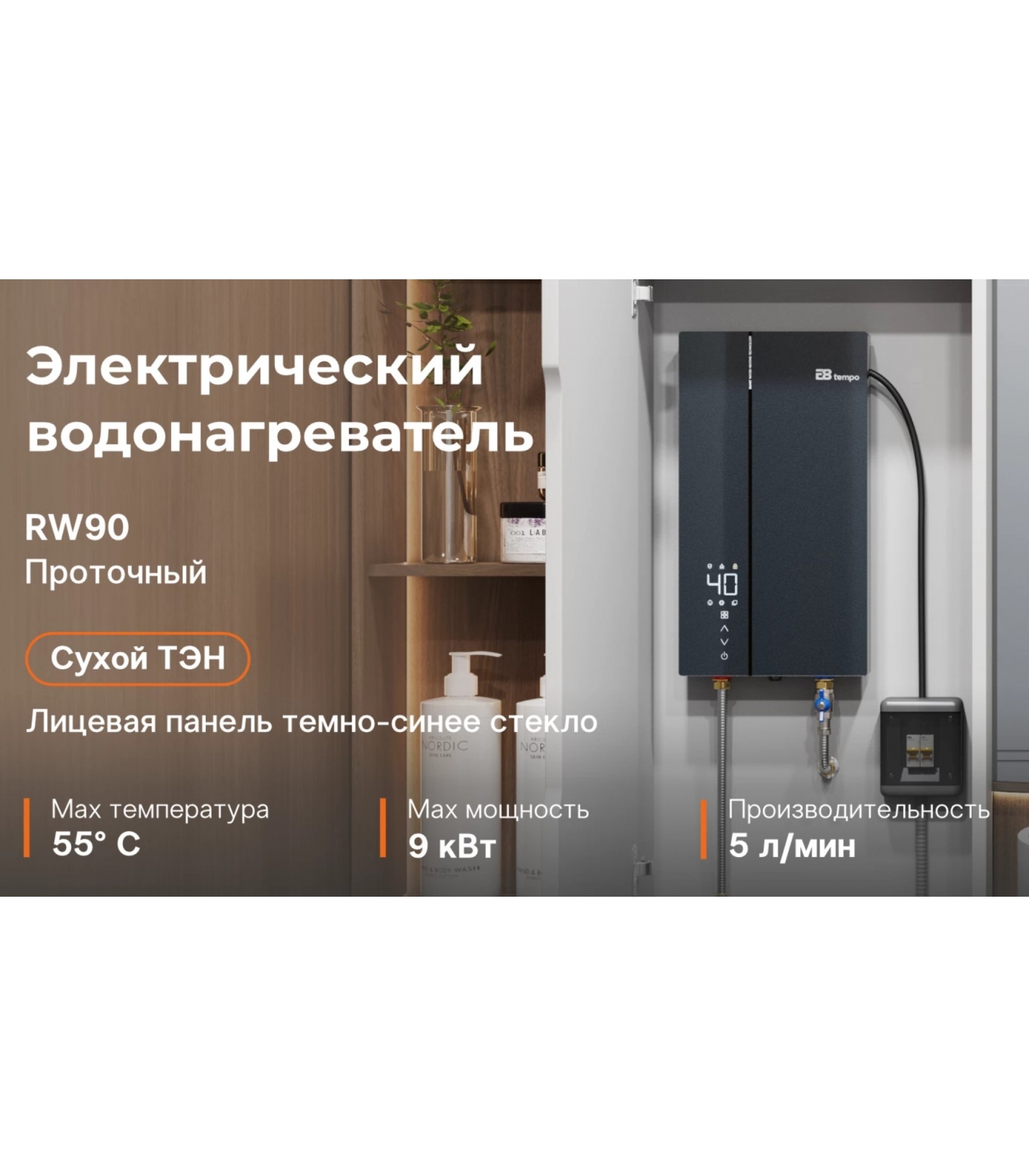 Водонагреватель RW90 проточный электрический, темно синее стекло, E8 tempo