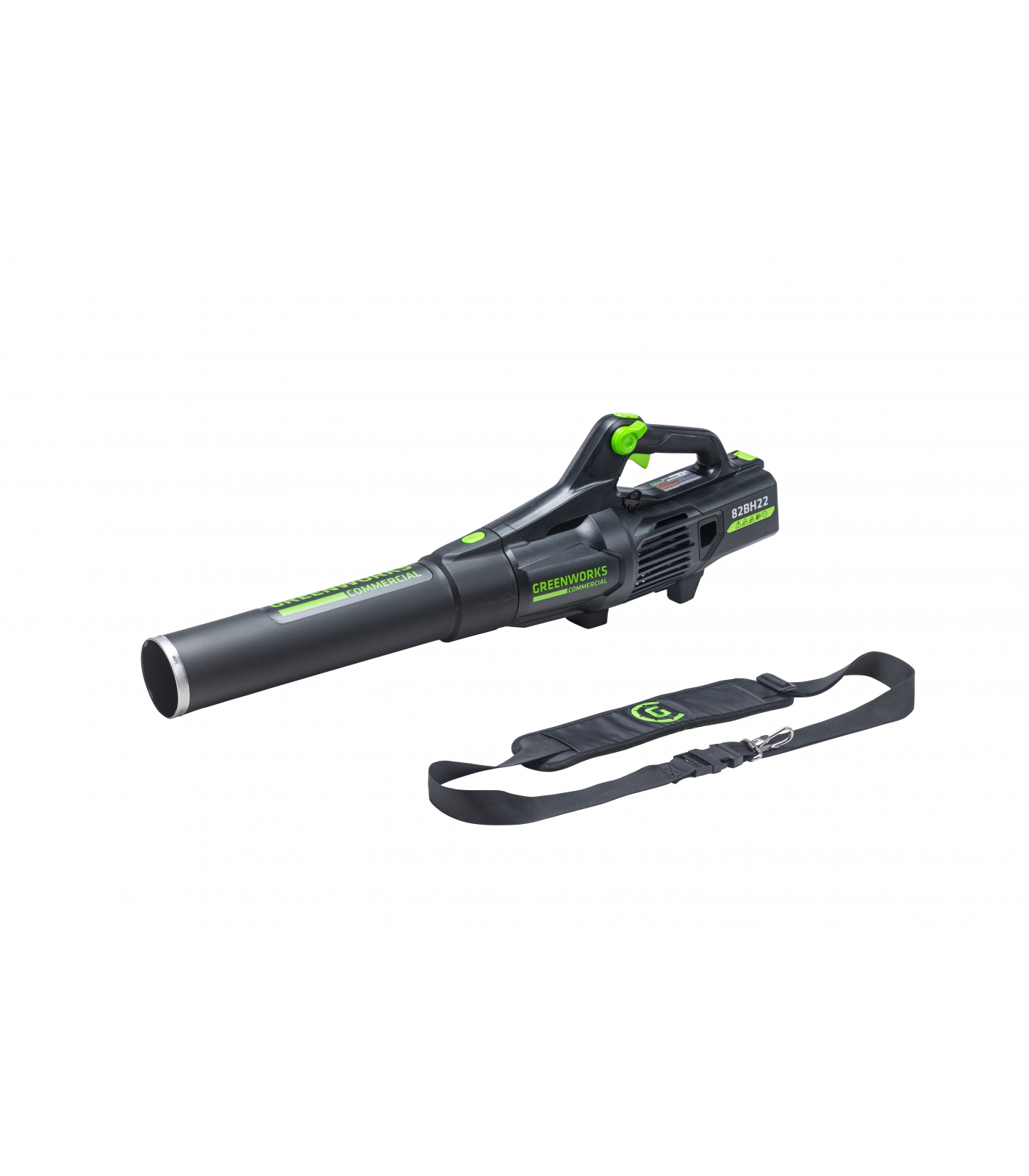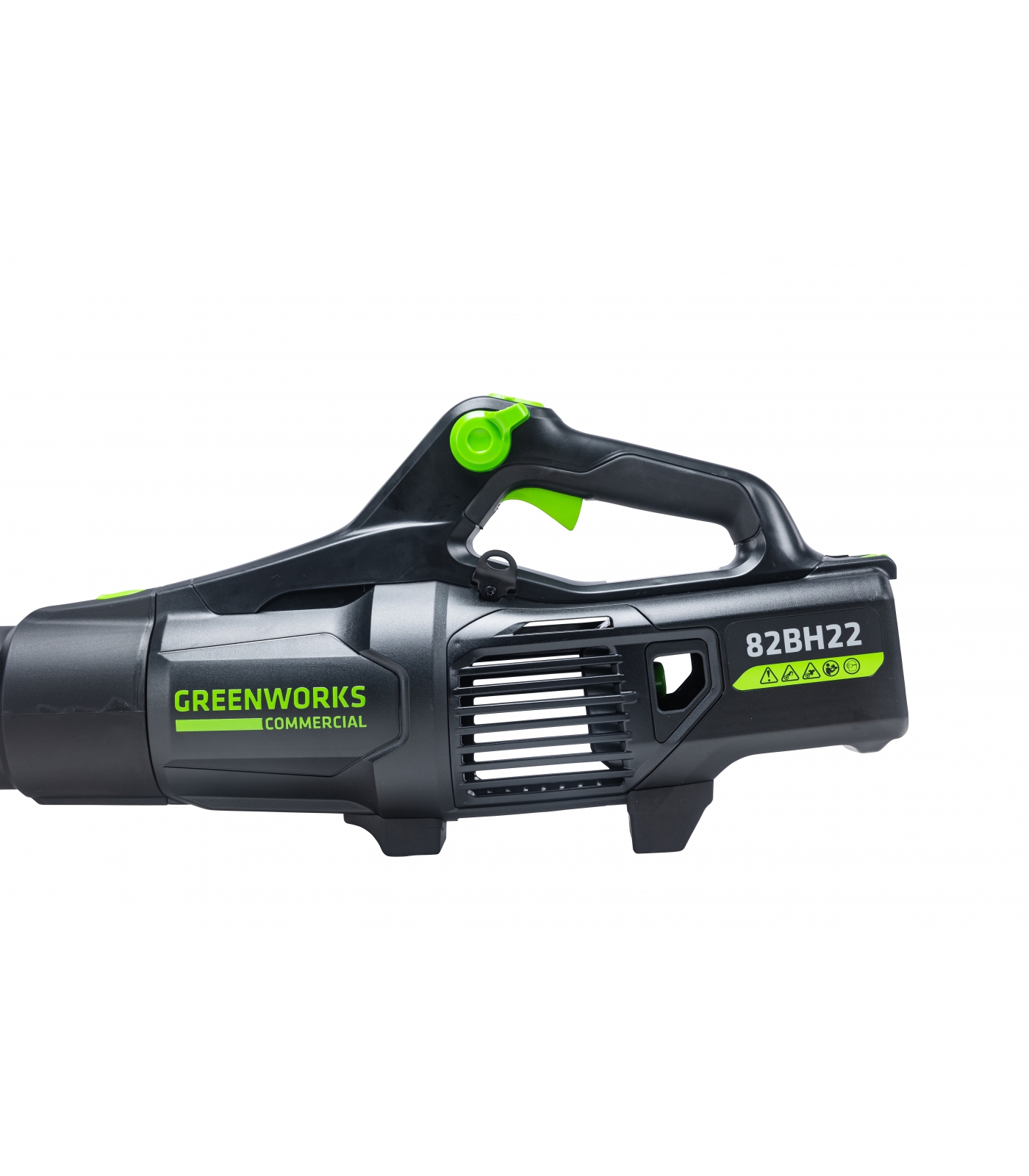 Воздуходув аккумуляторный Greenworks из линейки устройств 82 вольт Commercial GD82ABII, Арт. 2407007 – используется для очистки территорий от опавших листьев, мусора и пыли.