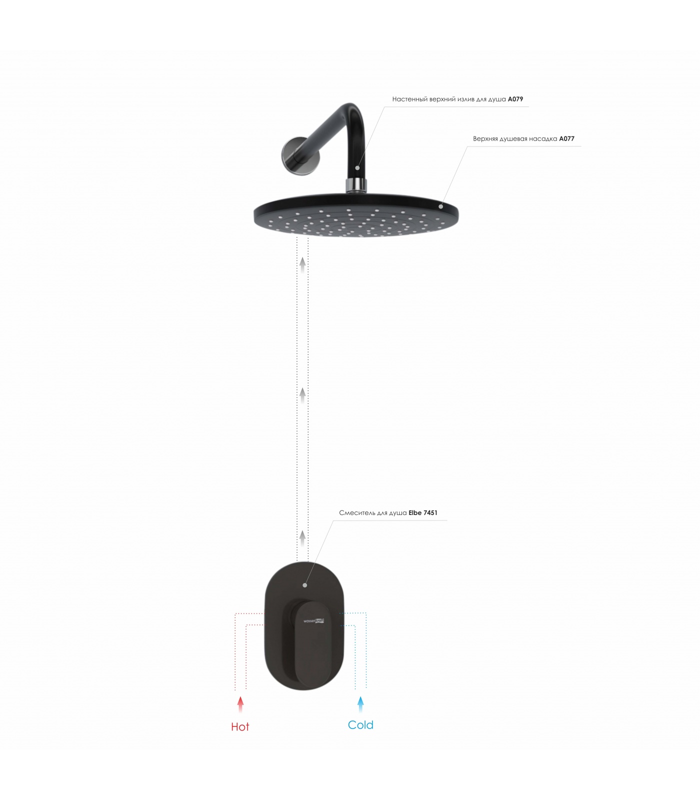 Встраиваемые комплекты Керамический картридж 35мм, Sedal (Испания), Душевая насадка ? 225 мм, 76 форсунок, ABS-пластик , Комплект скрытого монтажа, Наружная часть смесителя Смеситель для душа Elbe 7451 , Верхняя душевая насадка A077 , Настенный верхний излив для душа A079 латунь, ABS-пластик, Покрытие черный Soft-touch 5 лет.