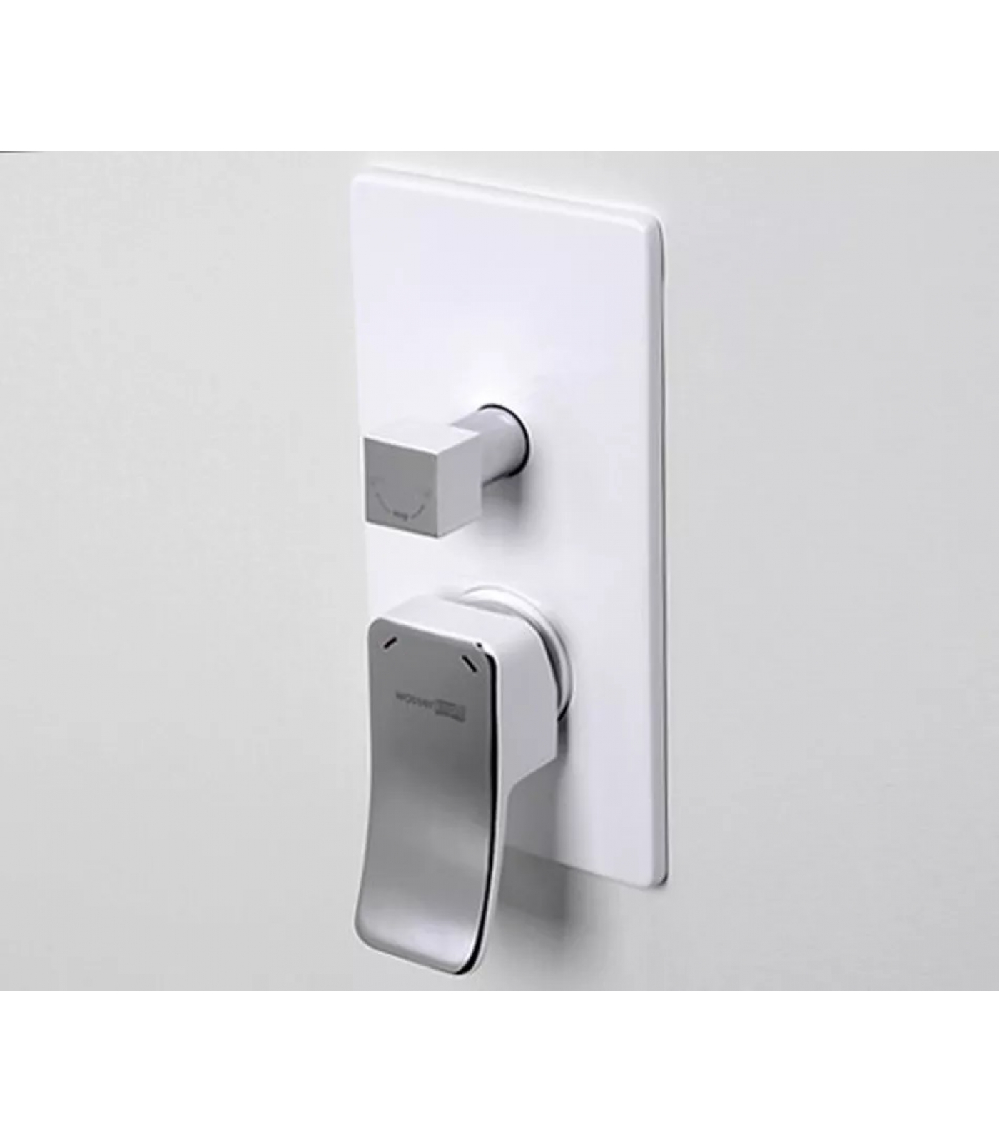 Смеситель для ванны и душа Aller 10641WHITE, Подключение шланга A021, Верхняя душевая насадка A067, Верхний излив для душа A019, Лейка 3-функциональная A058, Настенный держатель лейки, поворотный А011, Шланг для душа 1500 мм A010