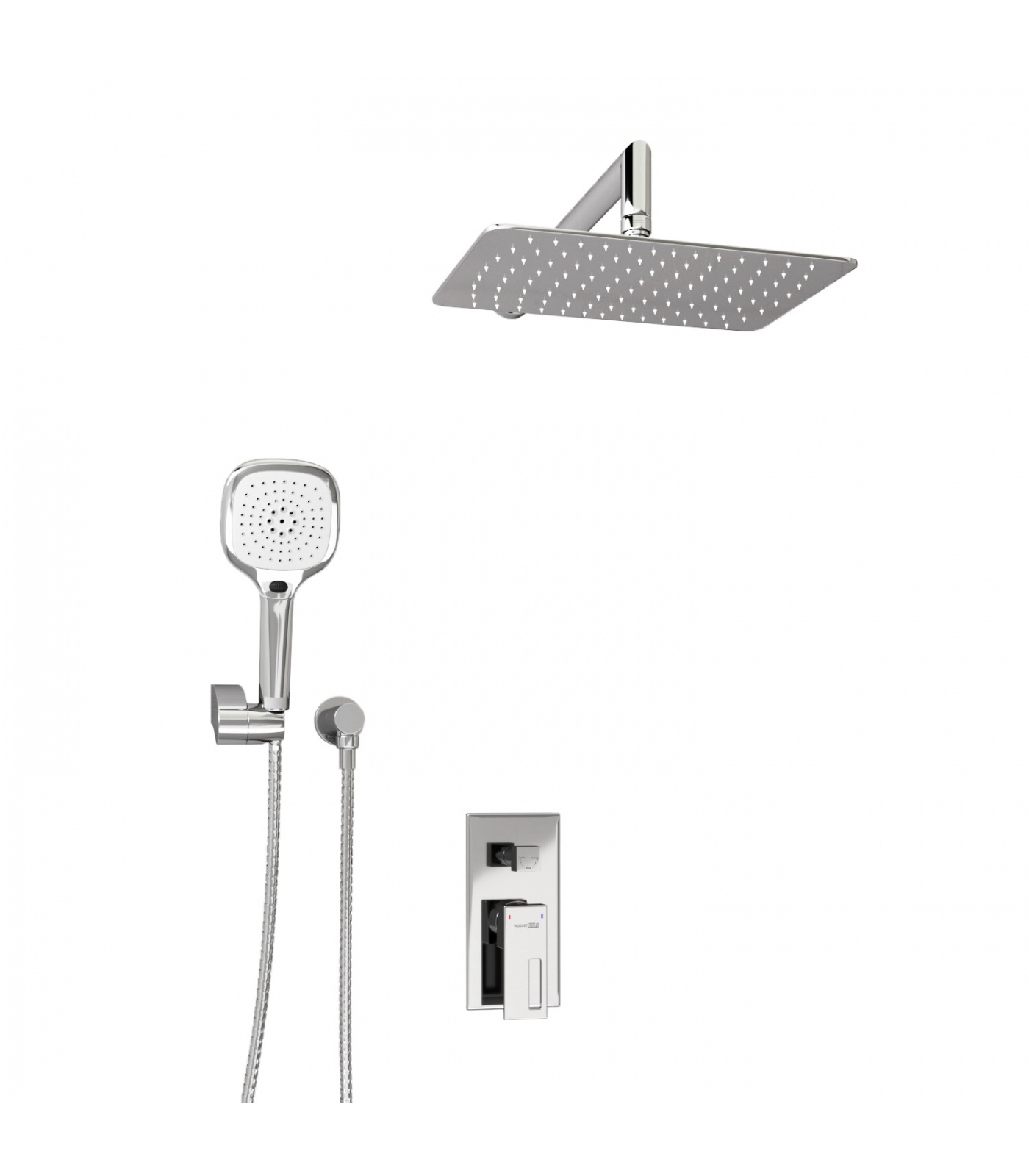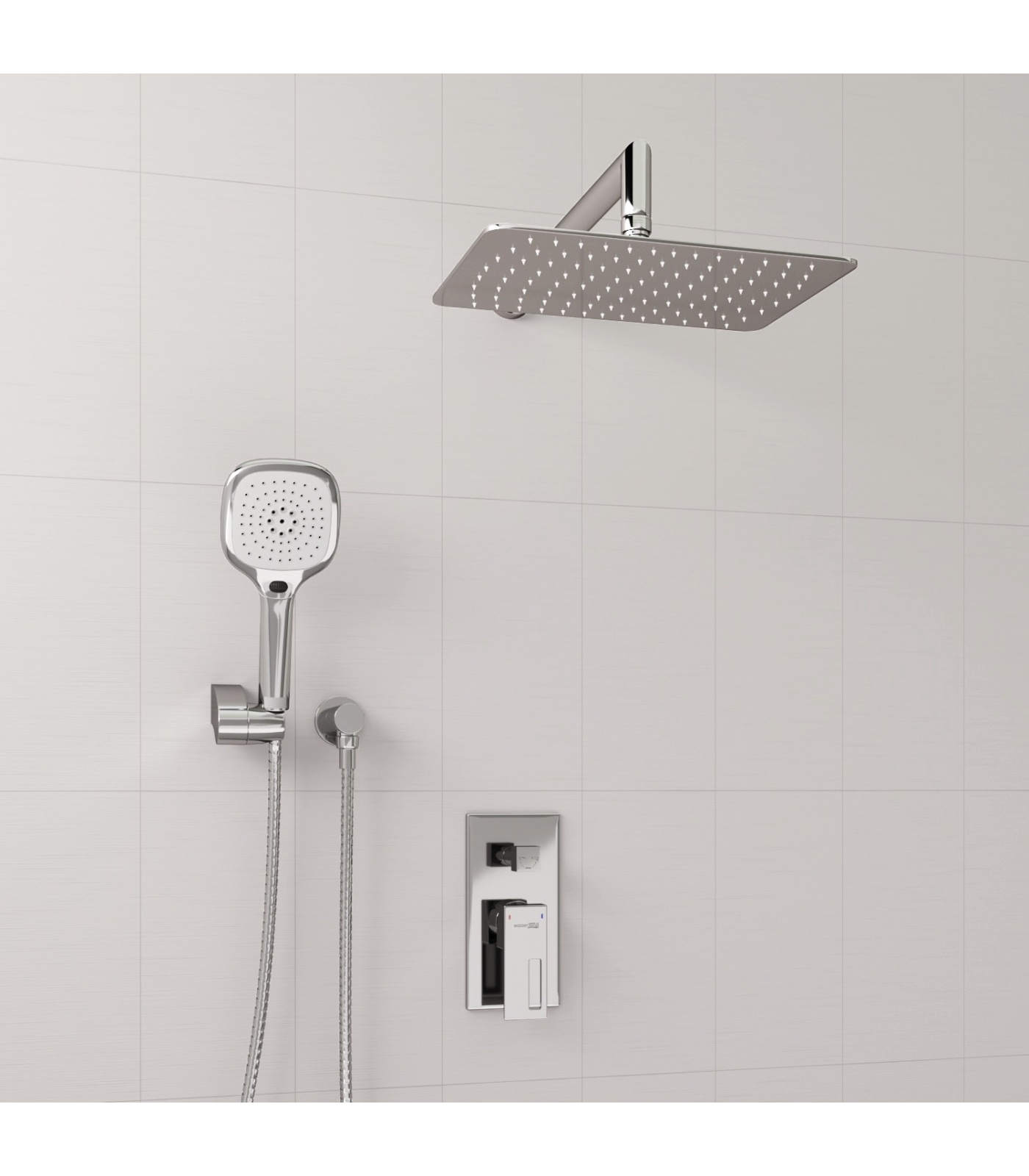 Керамический картридж 35мм, Sedal (Испания), Керамический поворотный переключатель, Душевая насадка 300х200 мм, 112 форсунок, нержавеющая сталь, Лейка 3-функциональная с системой защиты от известковых отложений, Комплект скрытого монтажа, Наружная часть смесителя