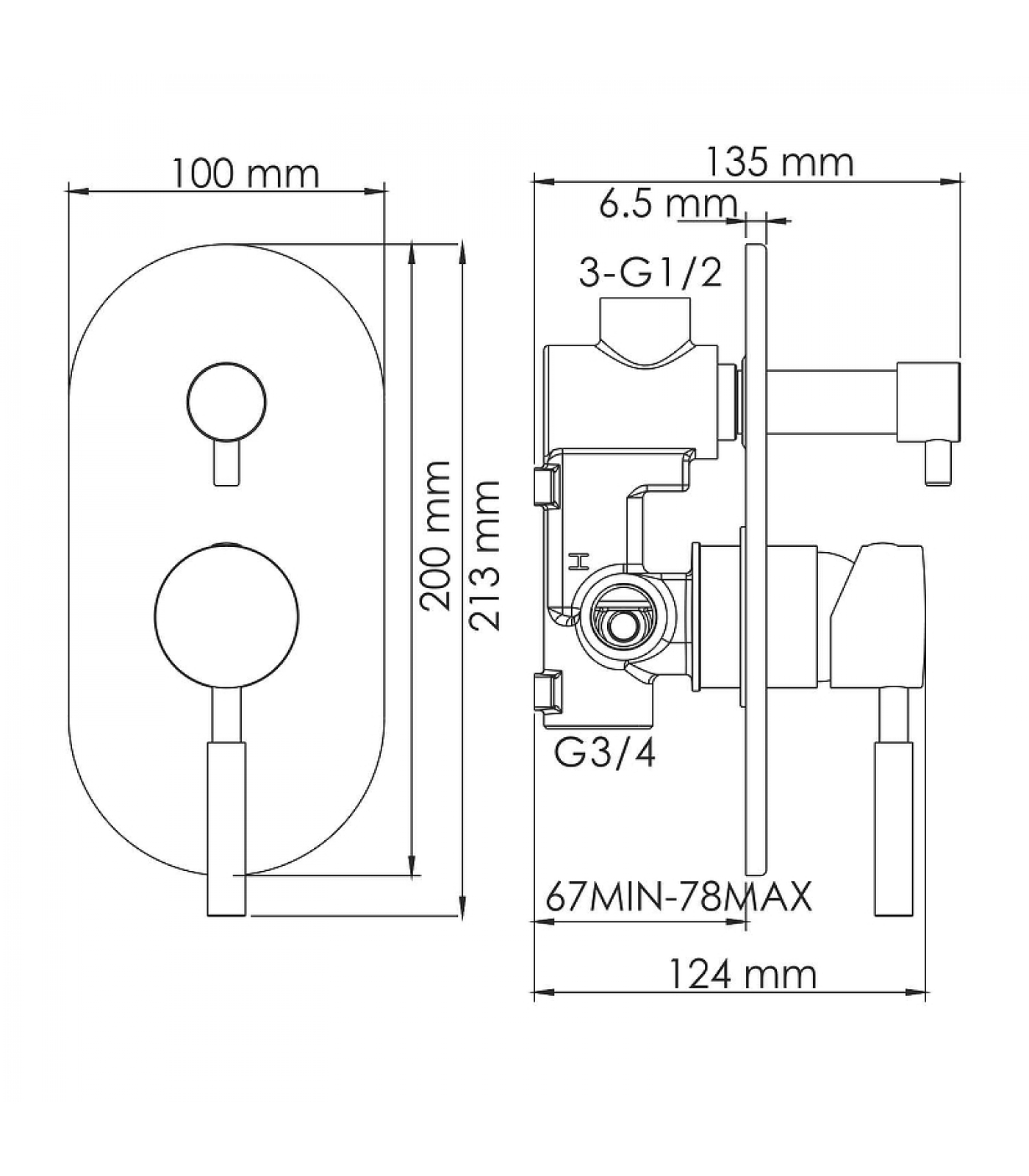Керамический картридж 35мм, Sedal (Испания), Керамический поворотный переключатель, Душевая насадка ? 248 мм, 126 форсунок, нержавеющая сталь, Лейка 3-функциональная с системой защиты от известковых отложений, Комплект скрытого монтажа, Наружная часть смесителя