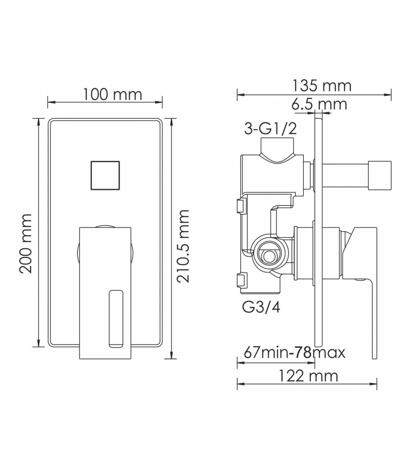 Керамический картридж 35мм, Sedal (Испания), Керамический поворотный переключатель, Душевая насадка 400 x 400 мм, 234 форсунок, нержавеющая сталь, Лейка 3-функциональная с системой защиты от известковых отложений, Комплект скрытого монтажа, Наружная часть смесителя