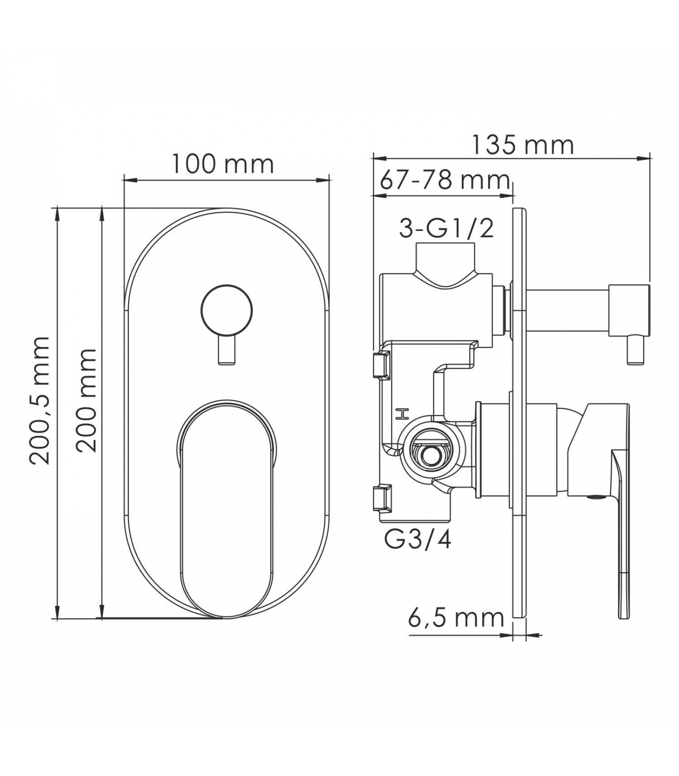 Керамический картридж 35мм, Sedal (Испания), Керамический поворотный переключатель, Душевая насадка ? 225 мм, 76 форсунок, ABS-пластик , Лейка 3-функциональная с системой защиты от известковых отложений, Комплект скрытого монтажа, Наружная часть смесителя