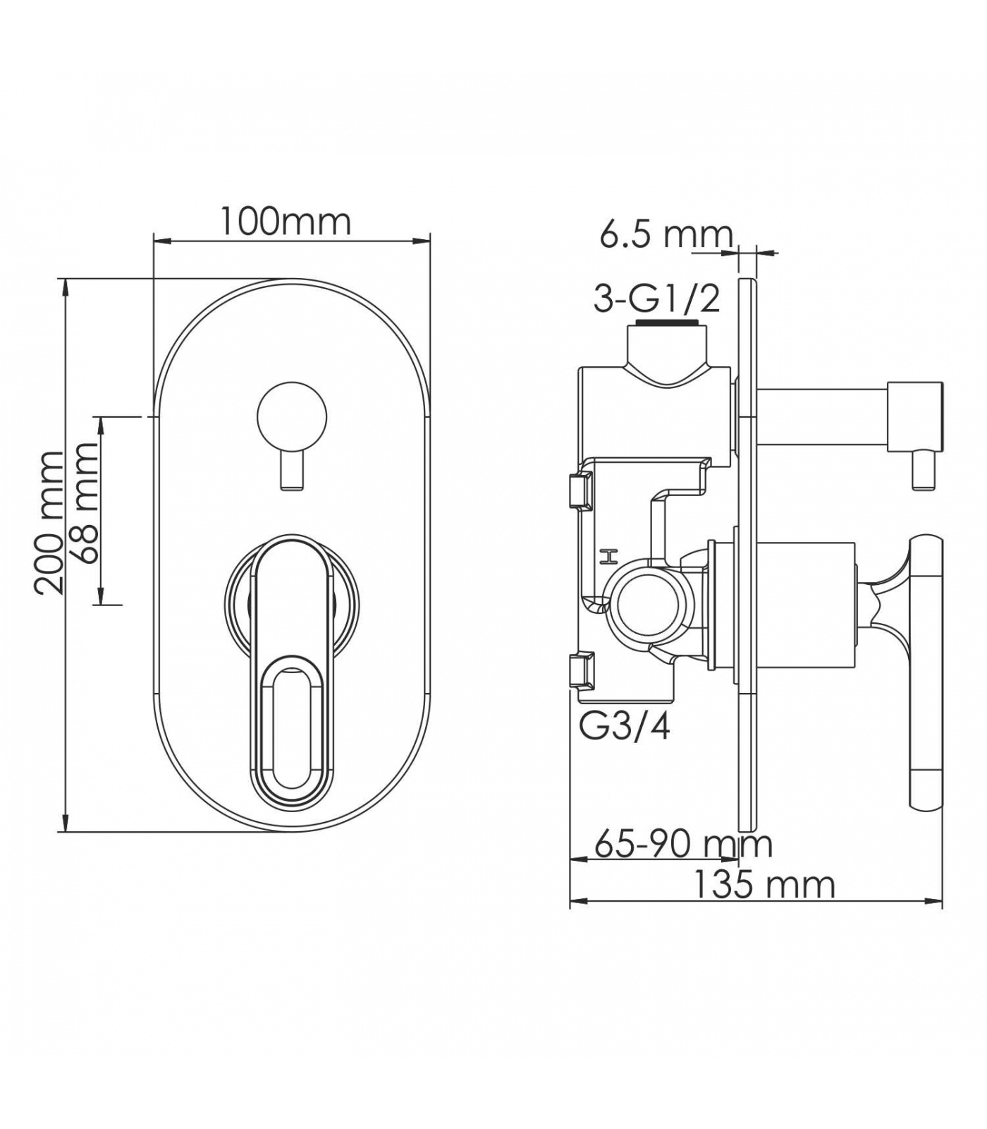 Керамический картридж 35мм, Sedal (Испания), Керамический поворотный переключатель, Лейка 3-функциональная с системой защиты от известковых отложений, Комплект скрытого монтажа, Наружная часть смесителя, Душевая насадка ? 250 мм, 135 форсунок, ABS-пластик