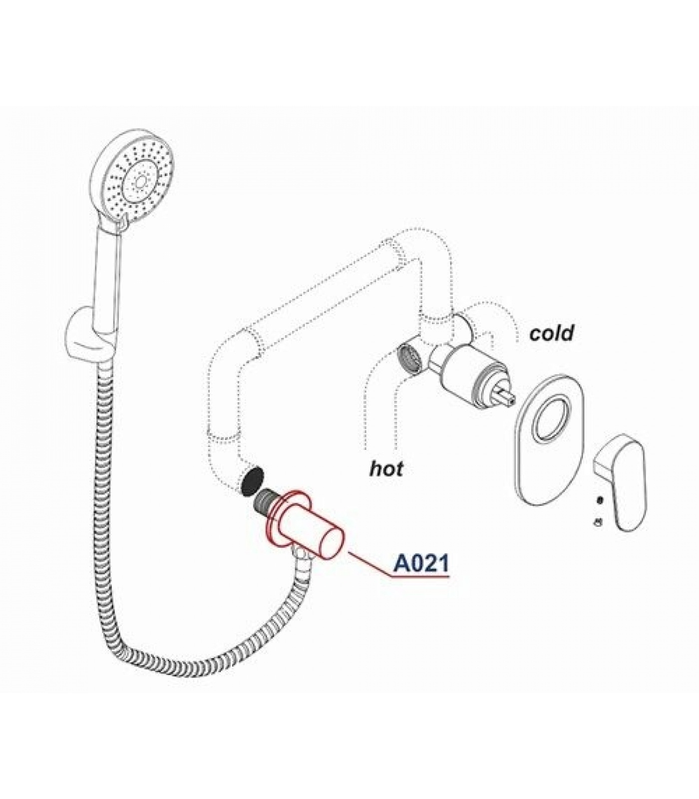 Смеситель для ванны и душа Kammel 1841 , Подключение шланга A021, Верхняя душевая насадка A030, Верхний излив для душа A019, Лейка 3-функциональная A060, Настенный держатель лейки, поворотный А014, Шланг для д??ша 1500 мм A010