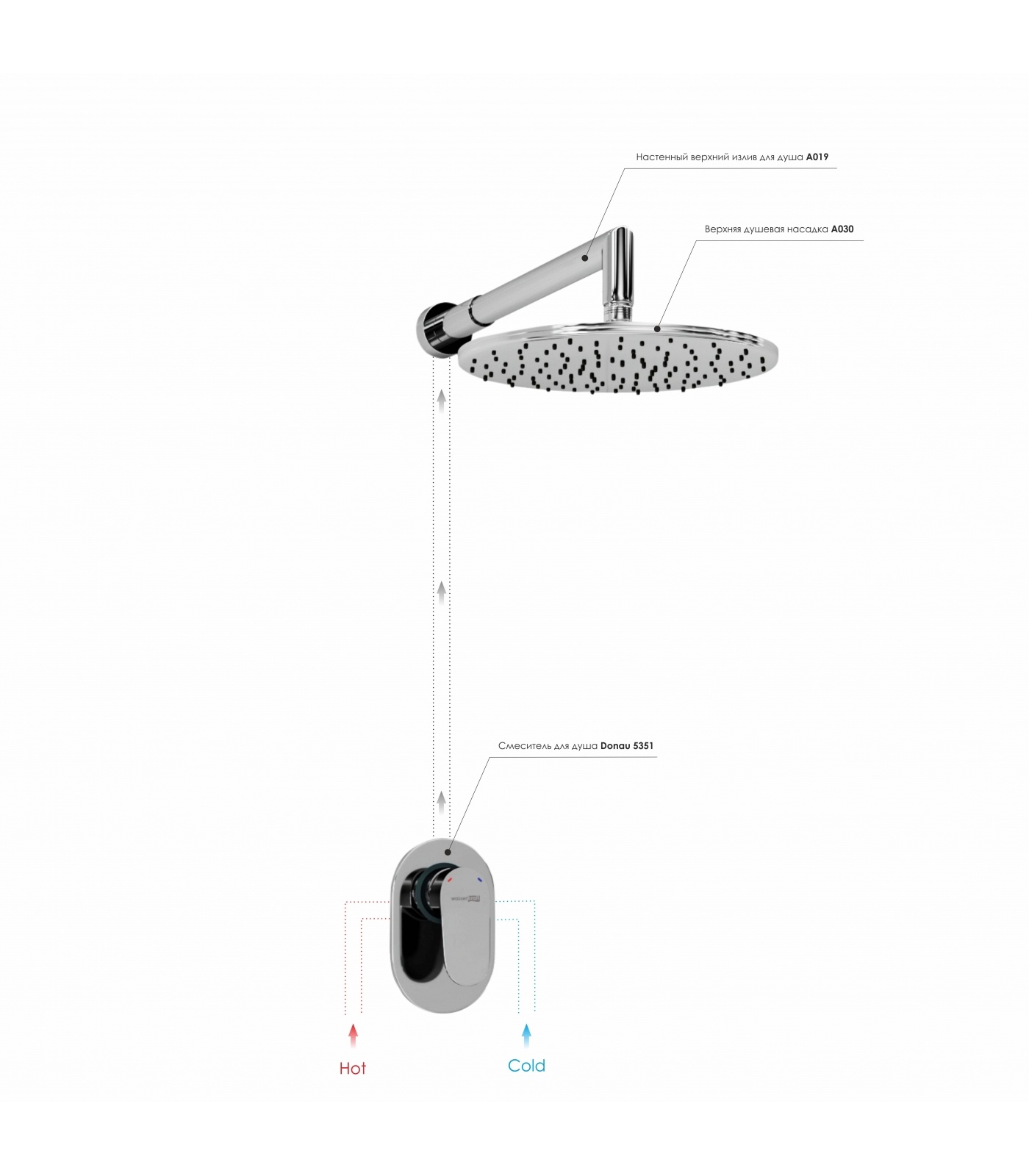 Встраиваемые комплекты Керамический картридж 40мм, Sedal (Испания), Комплект скрытого монтажа, Наружная часть смесителя, Душевая насадка ? 250 мм, 135 форсунок, ABS-пластик Смеситель для душа Donau 5351, Верхняя душевая насадка A030, Верхний излив для душа A019 латунь, хромоникелевое покрытие, ABS-пластик 5 лет.