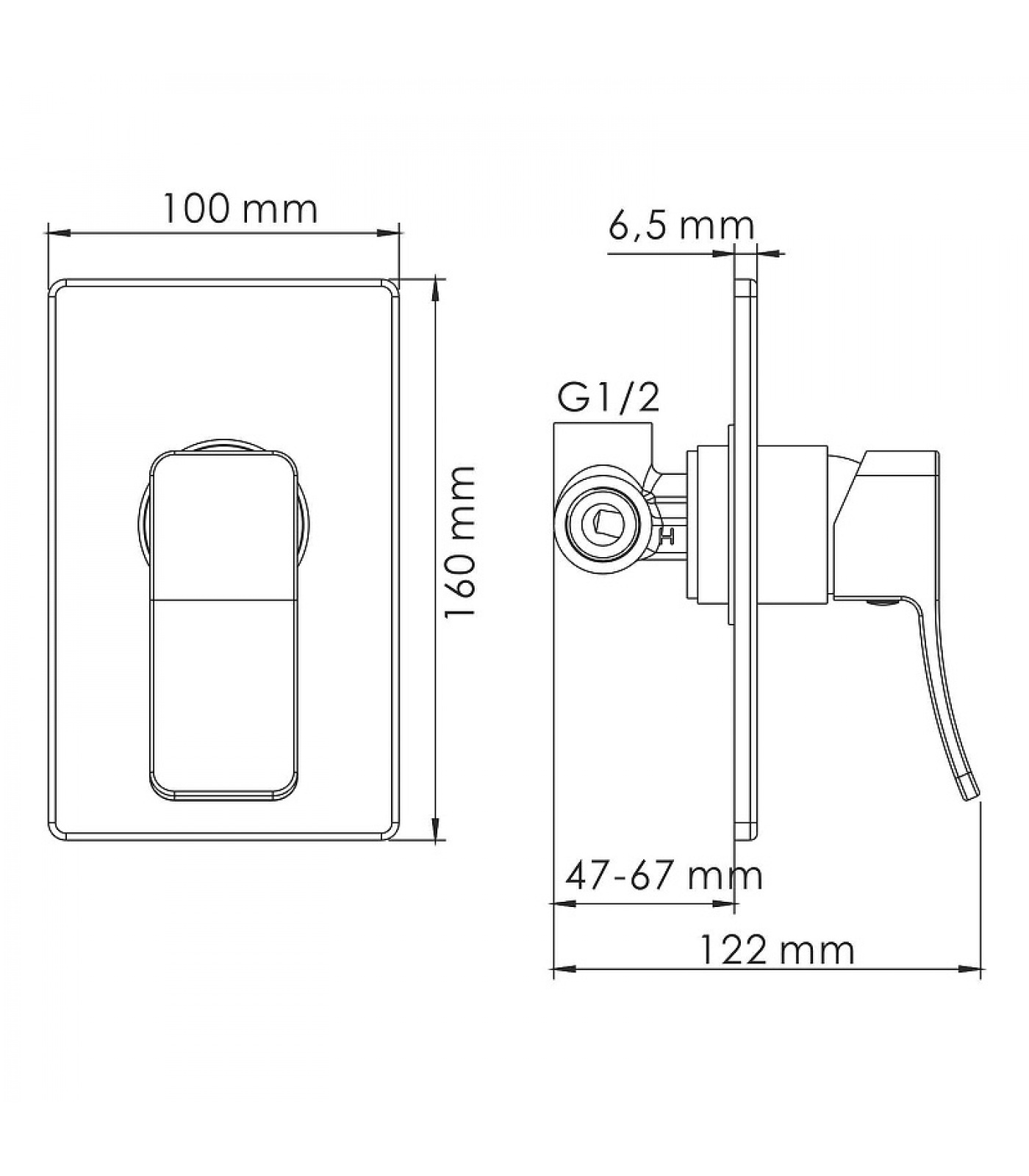 Смеситель для душа Exter 1651, Верхняя душевая насадка A140, Верхний излив для душа A110