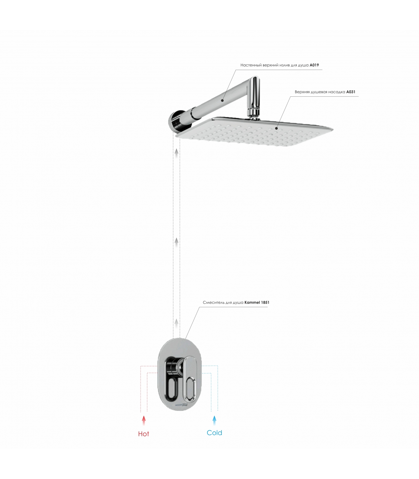Встраиваемые комплекты Керамический картридж 35мм, Sedal (Испания), Душевая насадка 250х190 мм, 88 форсунок, ABS-пластик, Комплект скрытого монтажа, Наружная часть смесителя Смеситель для душа Kammel 1851 , Верхняя душевая насадка A031, Верхний излив для душа A019 латунь, хромоникелевое покрытие, ABS-пластик 5 лет.