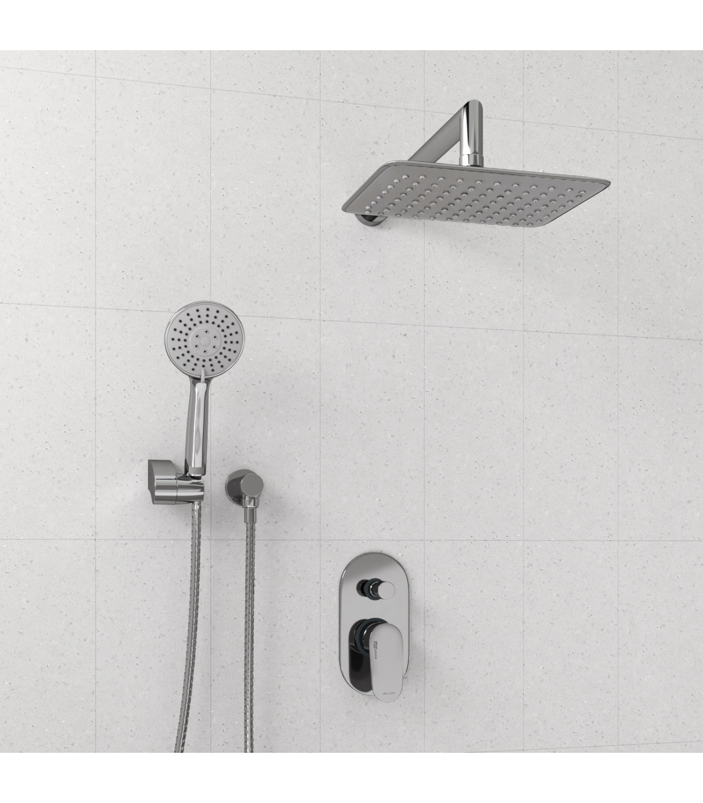 Керамический картридж 40мм, Sedal (Испания), Душевая насадка 250х190 мм, 88 форсунок, ABS-пластик, Лейка 3-функциональная с системой защиты от известковых отложений, Кнопочный переключатель на душ, Комплект скрытого монтажа, Наружная часть смесителя