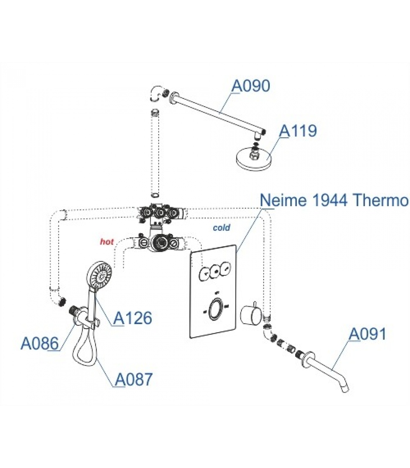Термостатический смеситель для ванны и душа Neime 1944 Thermo