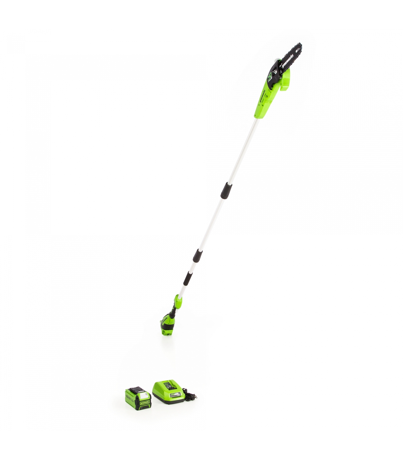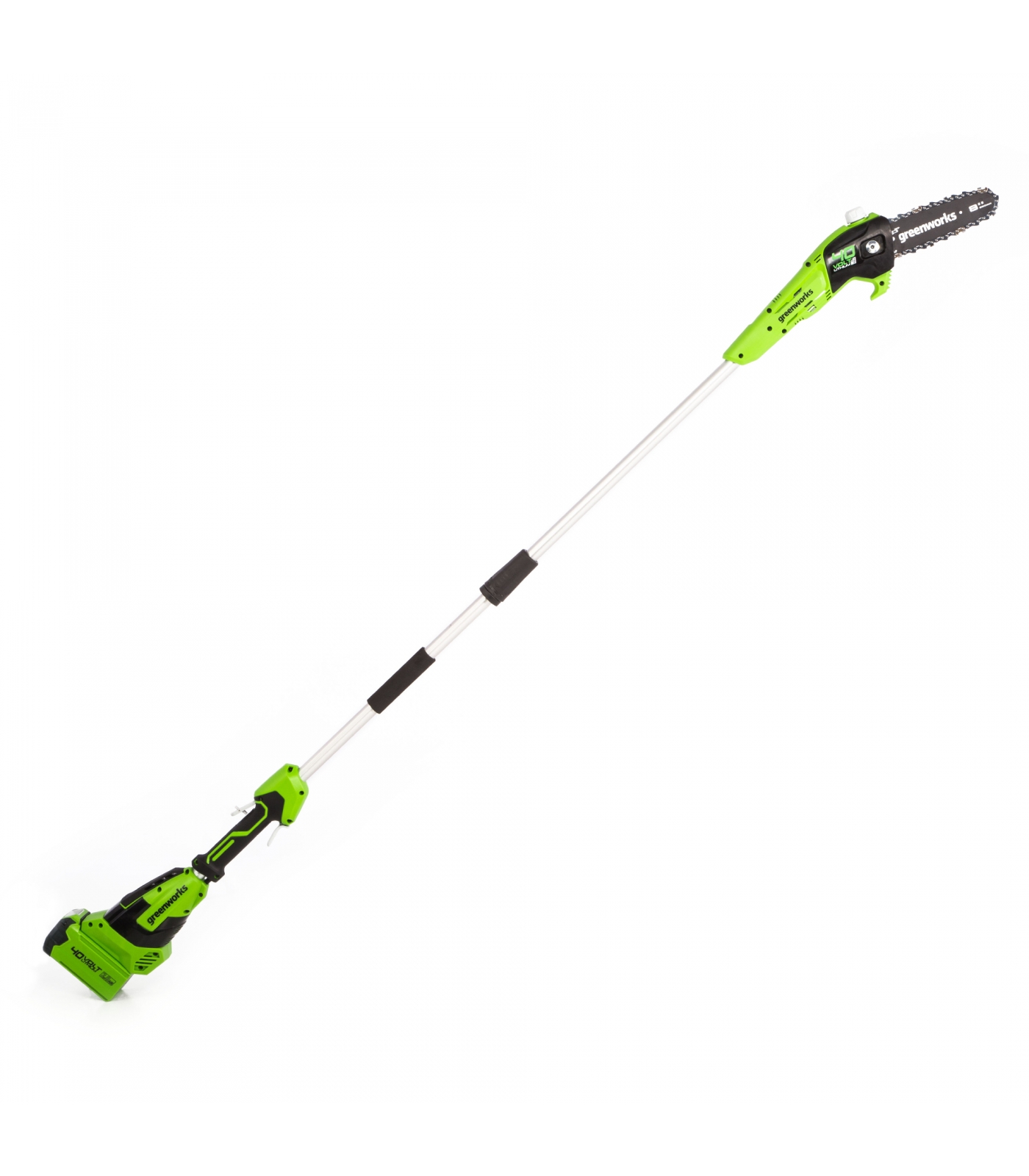 Высоторез/Сучкорез аккумуляторный Greenworks Арт. 1401107, 40V, 20 см, без АКБ и ЗУ – специально разработан для подрезки веток и сучьев без использования лестницы.