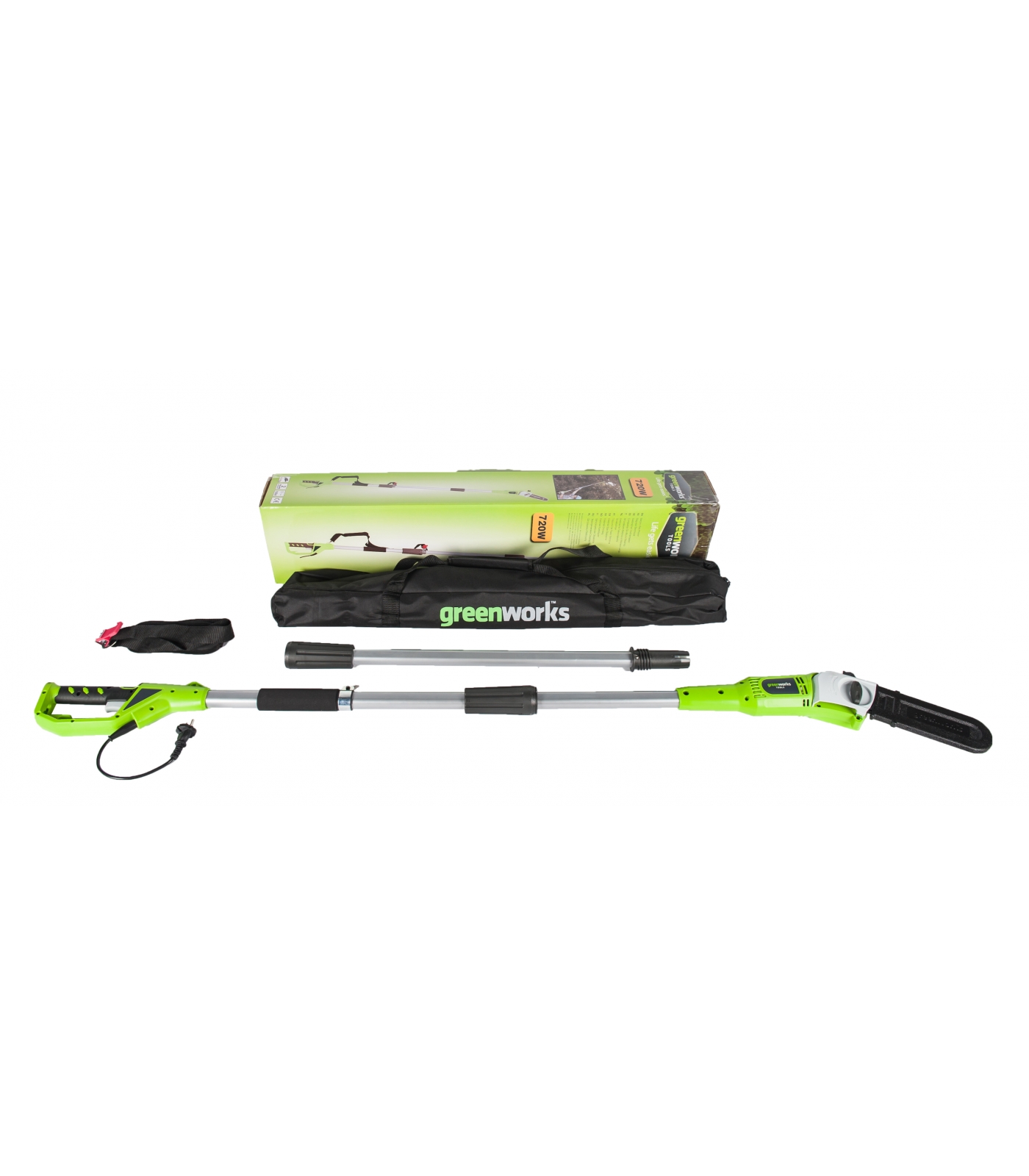 Высоторез (сучкорез) электрический Greenworks 720 Вт, Арт. 20147 – специально разработан для подрезки веток и сучьев без использования лестницы.