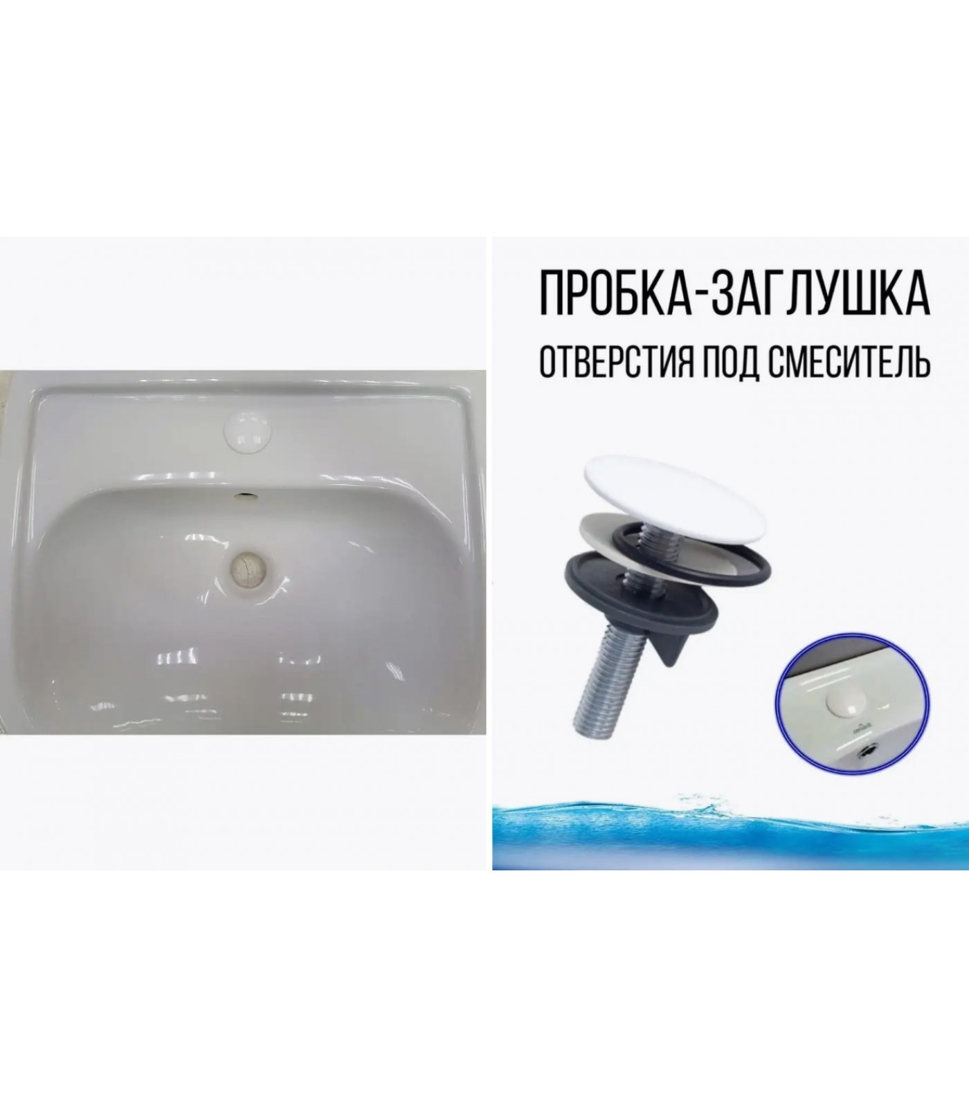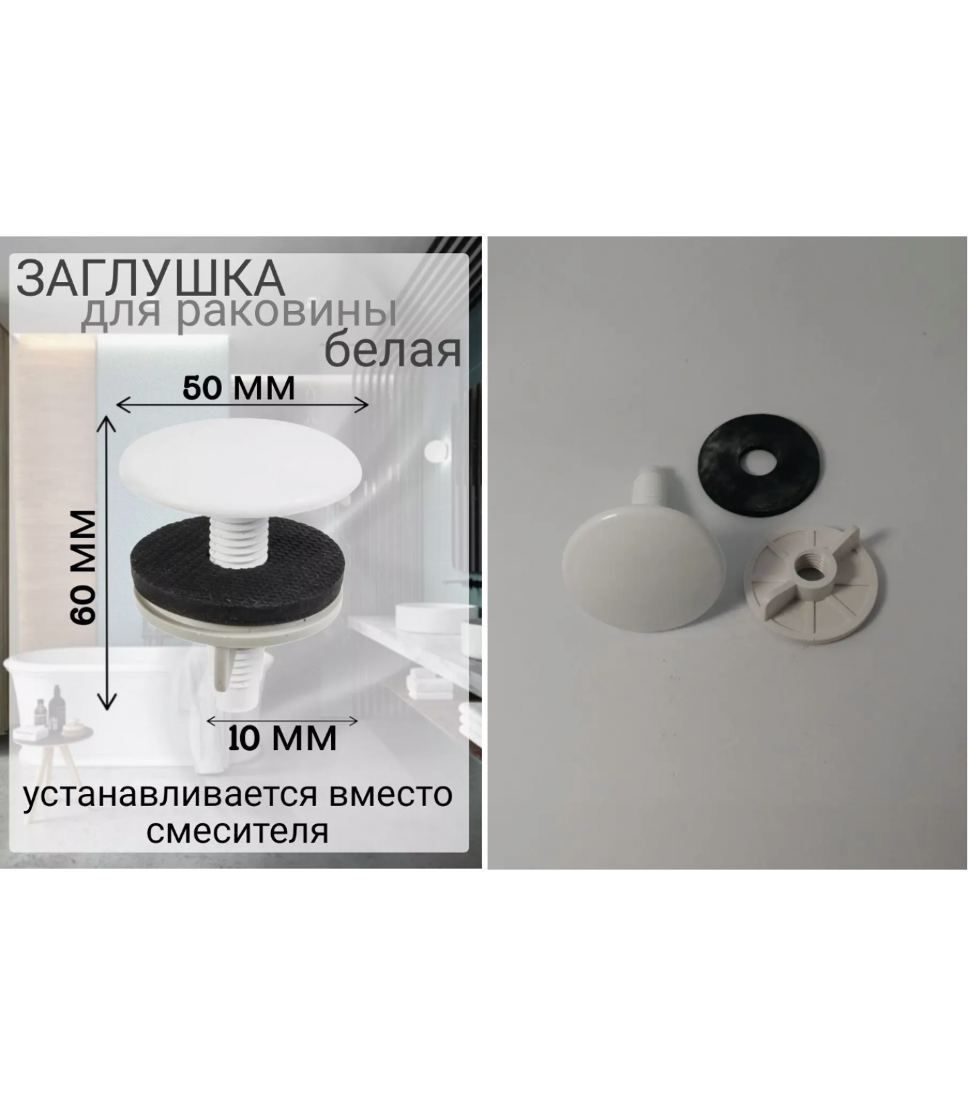 Заглушка для раковины белая предотвратит попадание воды в отверстие под смеситель. Она выполнена из белого пластика, поэтому не будет выделяться на фоне раковины.