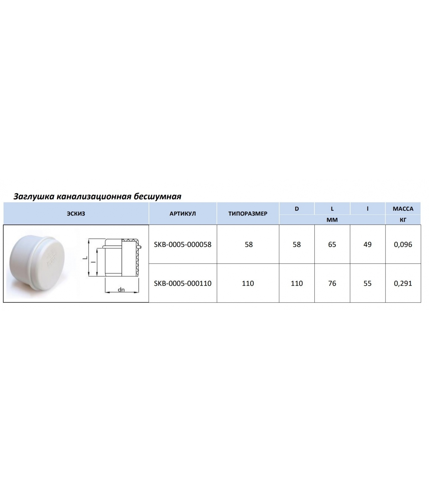 Заглушка канализационная бесшумная STOUT D 110