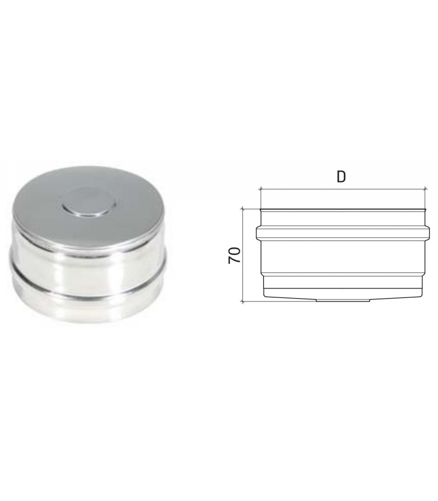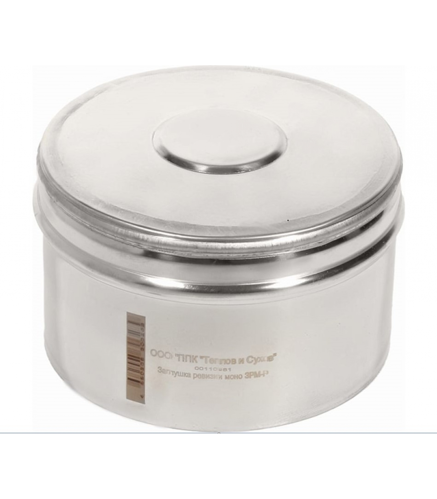 Заглушка ревизии представляет собой трубный элемент, перекрытый пластиной. Устанавливается на тройниках для контроля, сбора сажи и других фрагментов, попадающих в дымоход. Заглушки для тройников Моно подбираются по номинальному диаметру, для тройников Термо по наружному диаметру. На тройнике заглушка крепится с помощью трубного хомута.
