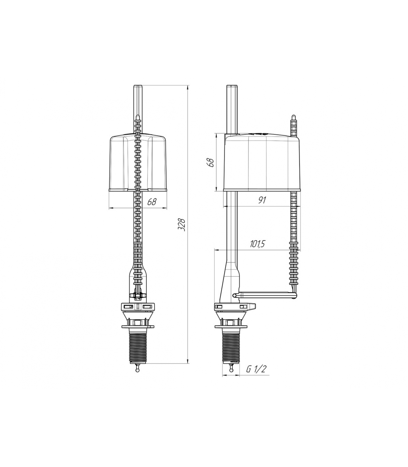 Наливной механизм бачка унитаза АНИ пласт WC5550 с нижней подводкой и пластиковой резьбой диаметром G 1/2 эконом.