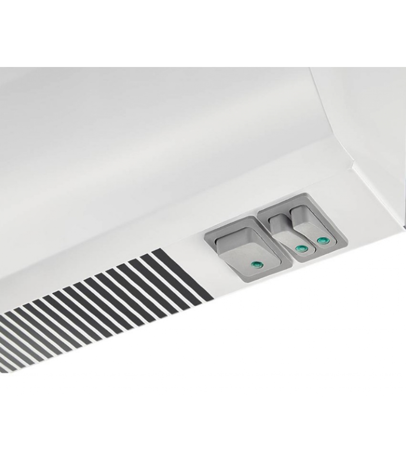 Завеса работает в трех режимах тепловой мощности – «режим вентиляции», «половина мощности», «полная мощность». Переключение между режимами осуществляется при помощи пылевлагозащищенных клавиш со световой индикацией работы, которые расположены на корпусе завесы. Модель оснащена встроенным регулировочным термостатом, который позволяет поддерживать нужную температуру в помещении.