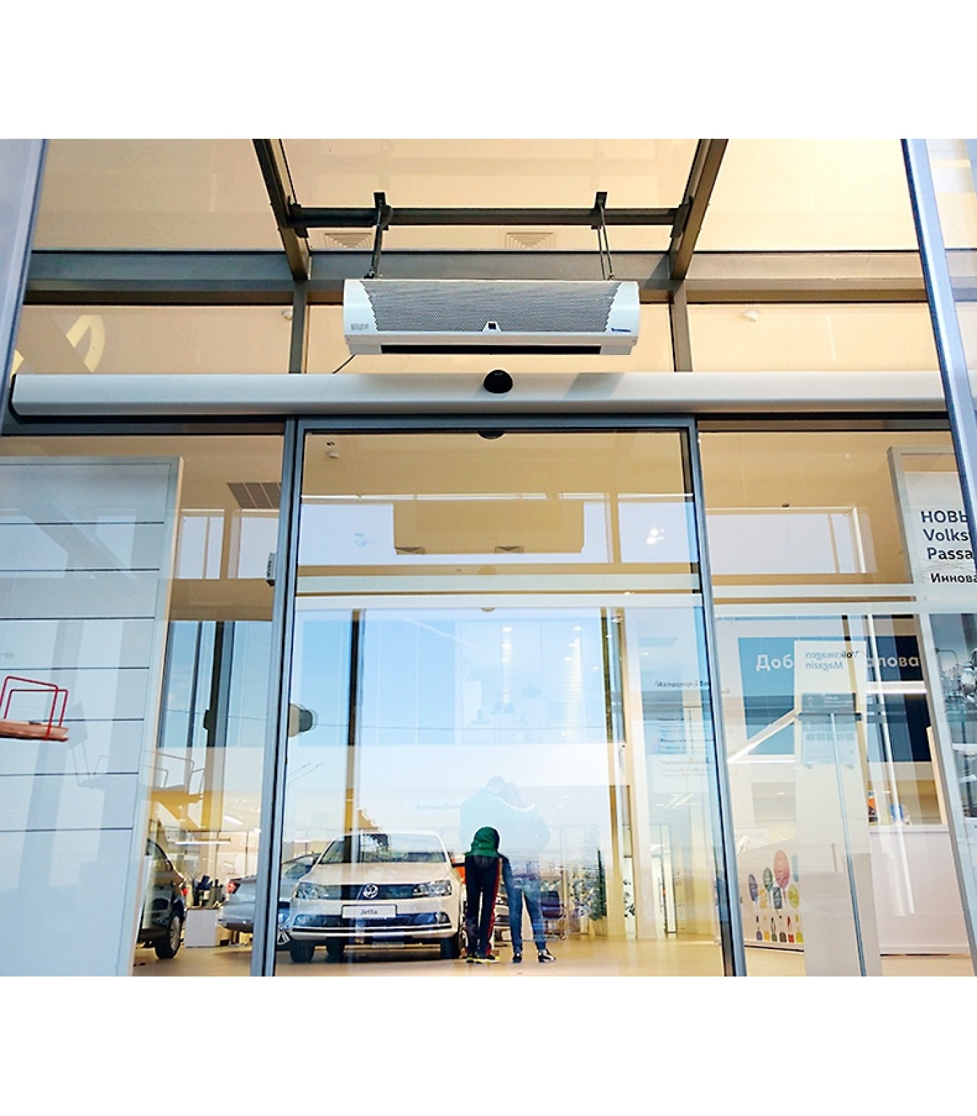 Оригинальная конструкция соплового аппарата завес «Комфорт» формирует равномерный воздушный поток с низким уровнем аэродинамического шума.