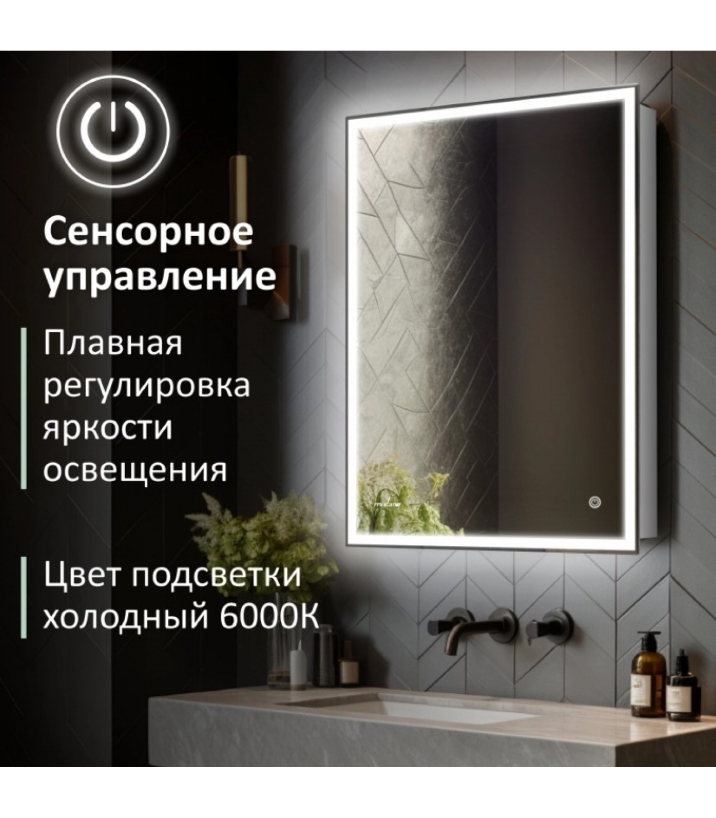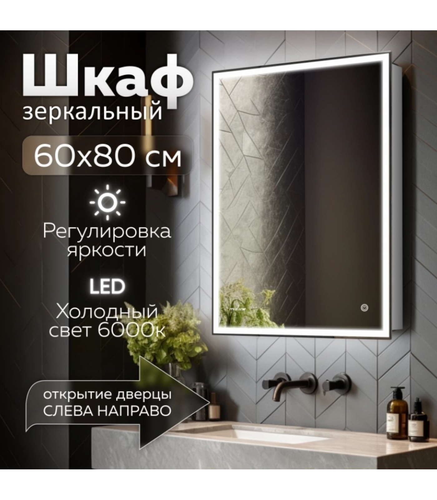 Зеркальный шкаф Mixline Минио 600*800 (ШВ) правый, сенсорный выкл, светодиодная подсветка