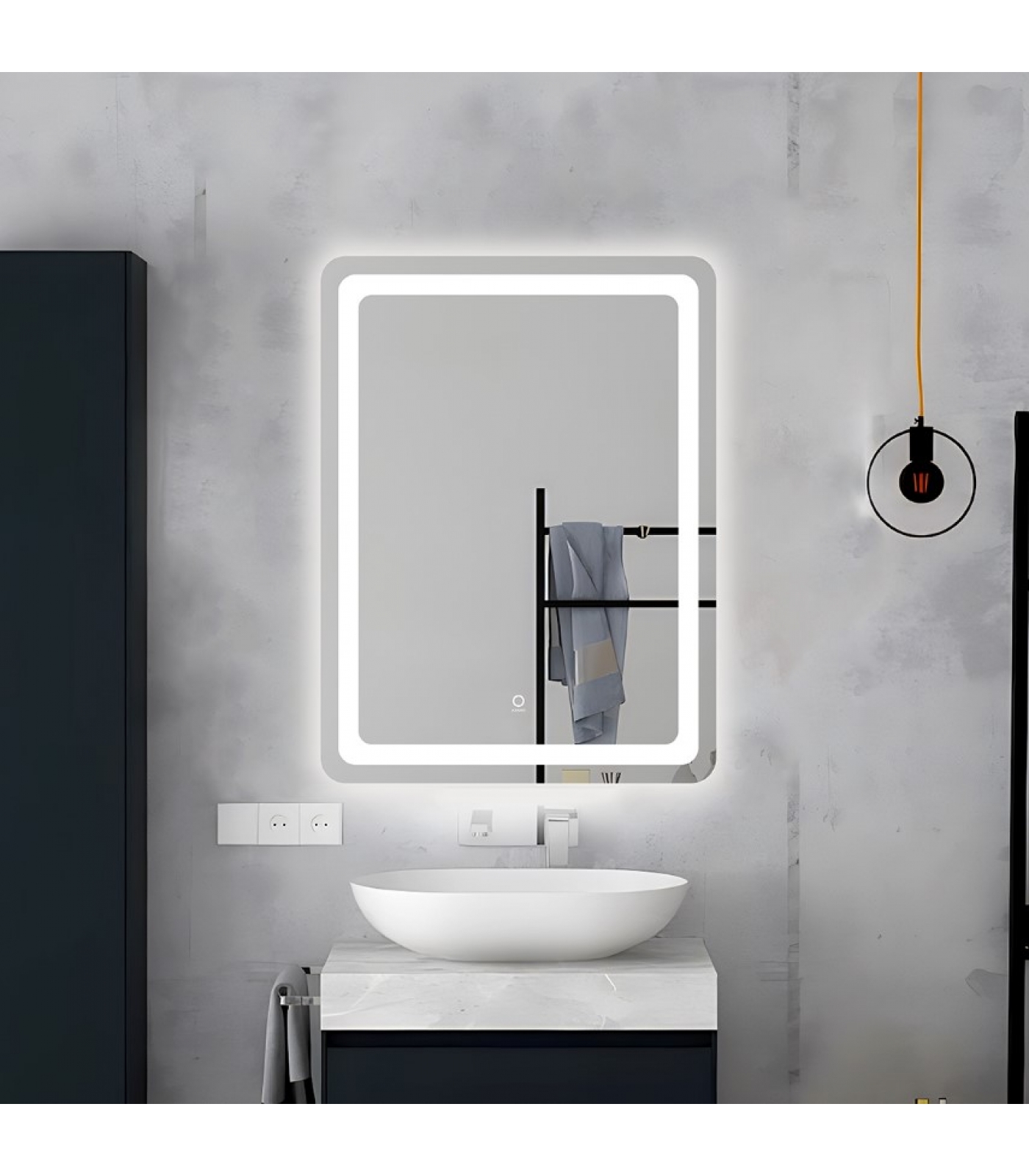 Зеркало AZARIO оснащено LED подсветкой и сенсорным выключателем с функцией плавного диммирования. Короткие касания выключателя меняют яркость свечения. Толщина зеркала 5 мм, что делает его надежным и прочным. Класс защиты IP44- это позволяет использовать электроприбор во влажном помещении.