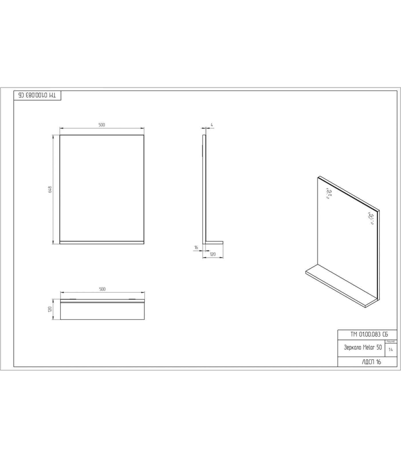 Зеркало Cersanit MELAR с полочкой, без подсветки, белый (B-LU-MEL)
