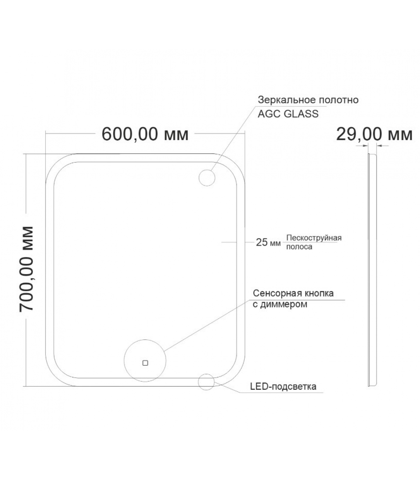 Зеркало Mixline Стив 600*700 сенсорный выключатель, светодиодная подсветка
