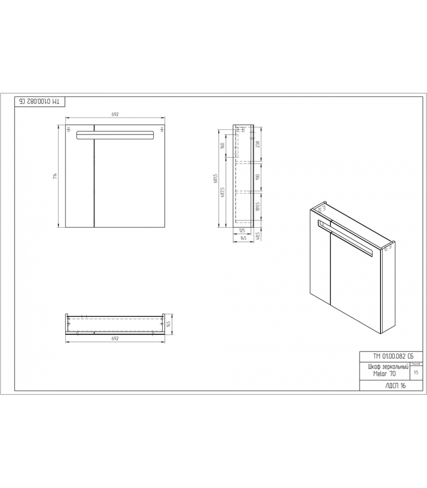 Элегантное зеркало-шкафчик Melar идеально впишется практически в любую ванную комнату. Функциональность зеркала-шкафчика усилена светодиодной подсветкой, которая не только позволяет экономить электроэнергию, но и не содержит соединений ртути, зеркало-шкафчик также содержит розетку и выключатель внутри шкафчика.