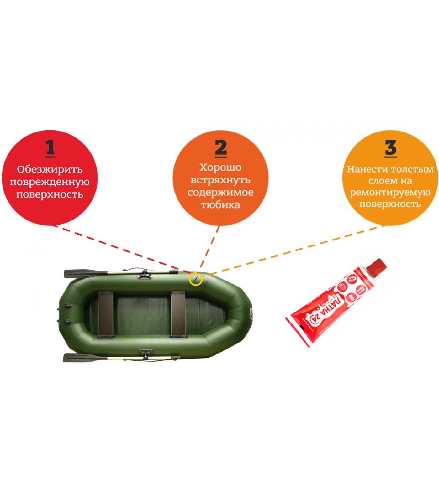 Обезжирить ремонтируемую поверхность. Взболтать содержимое тюбика. Нанести слой на место прокола (пореза).